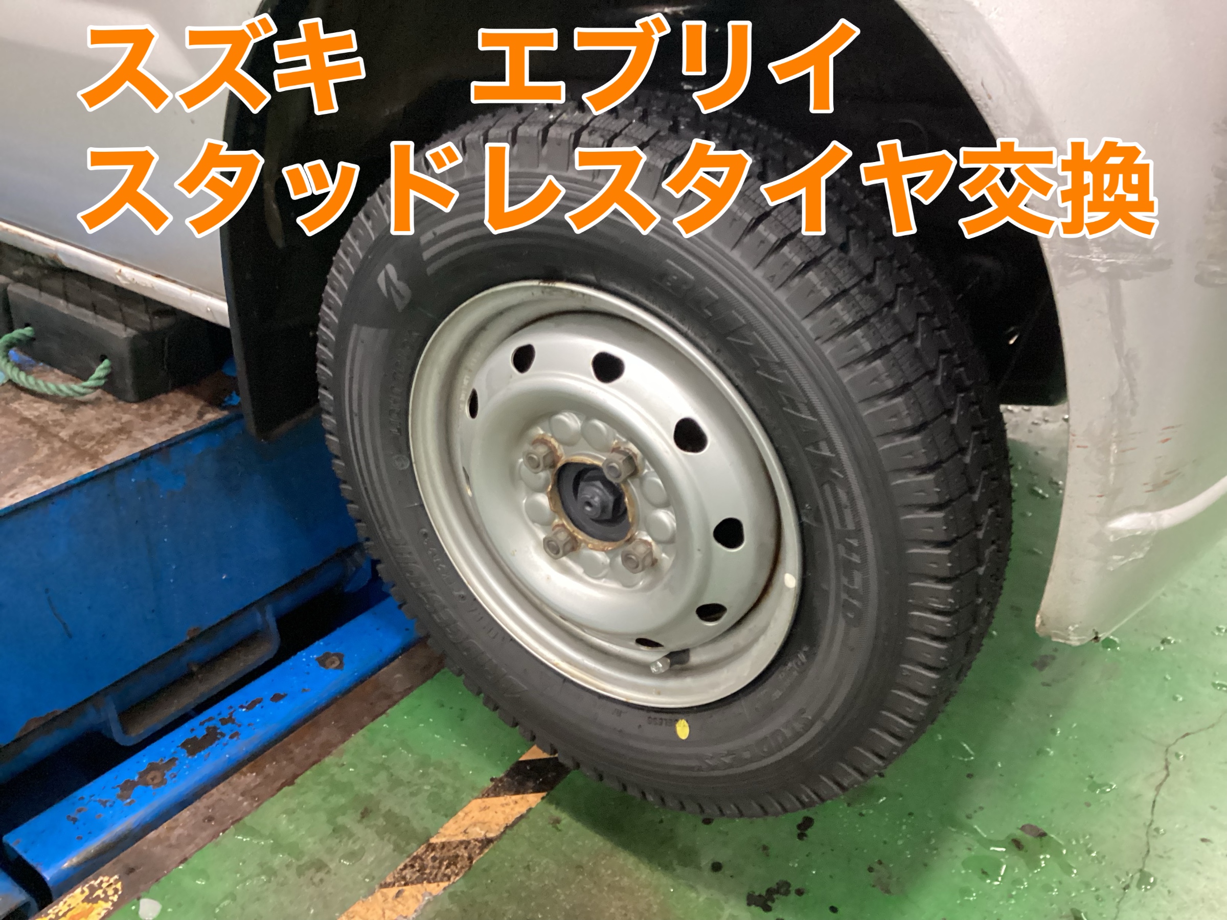 本日はタイヤ交換で入庫したスズキ エブリイのスタッドレスタイヤを交換していきます