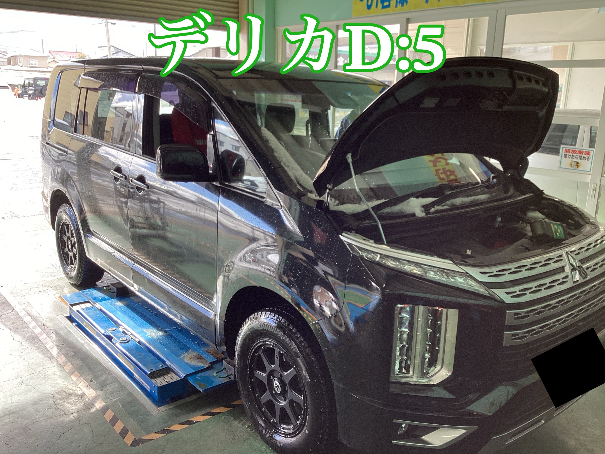 タイヤ交換で入庫した「デリカD:5」のスタッドレスタイヤを交換していきます!