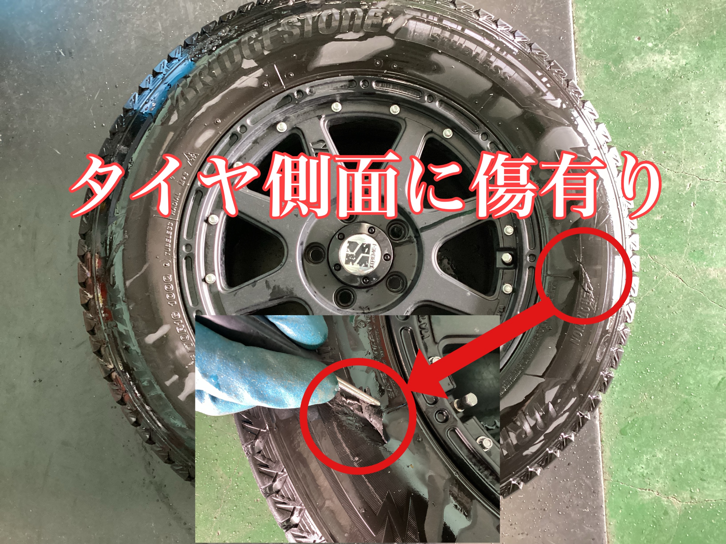 タイヤ側面部にエグれた傷があった1本だけの交換です