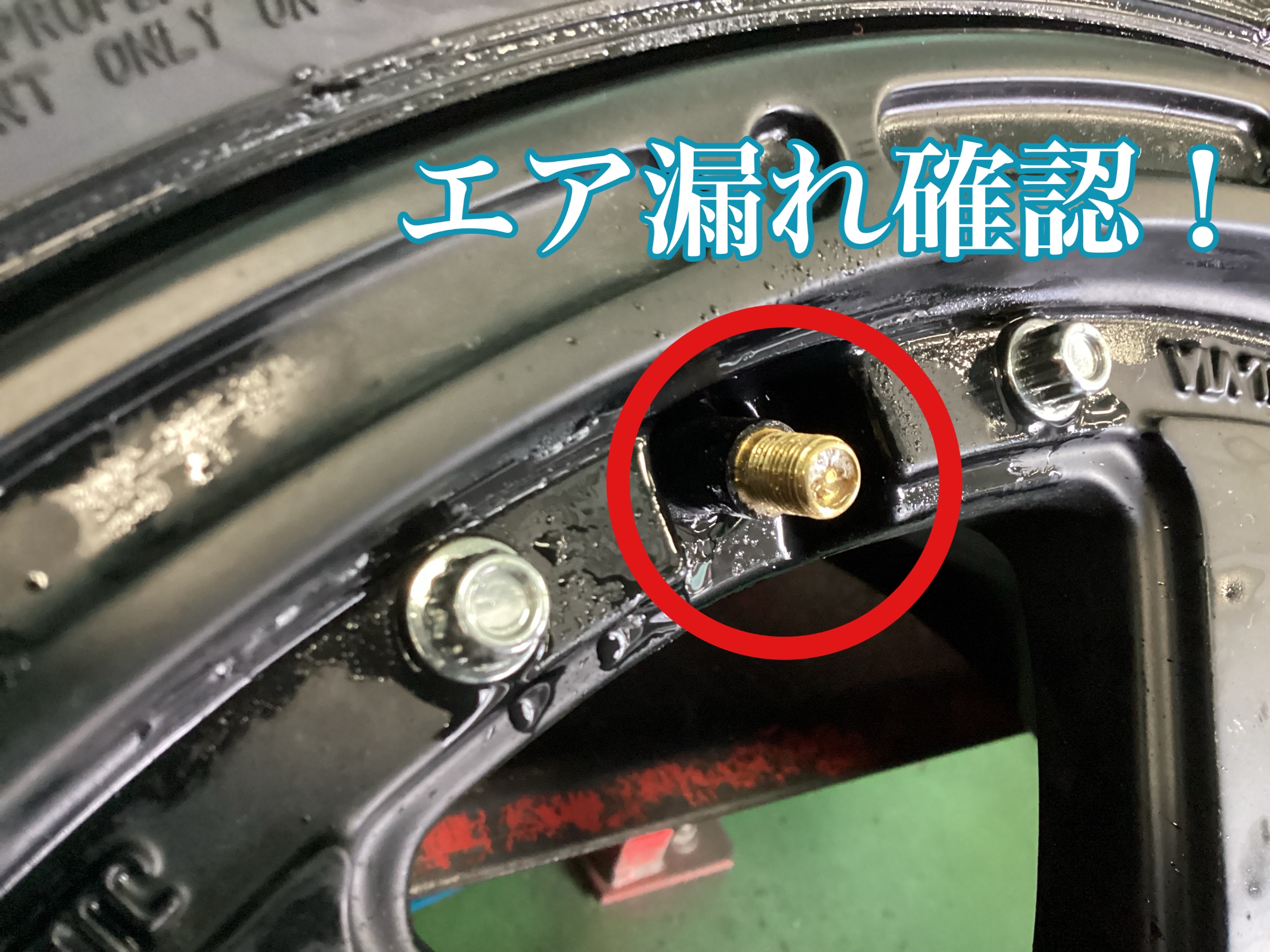 組み上がったタイヤは空気圧を規定の圧力まで注入し、漏れ確認も行なっております