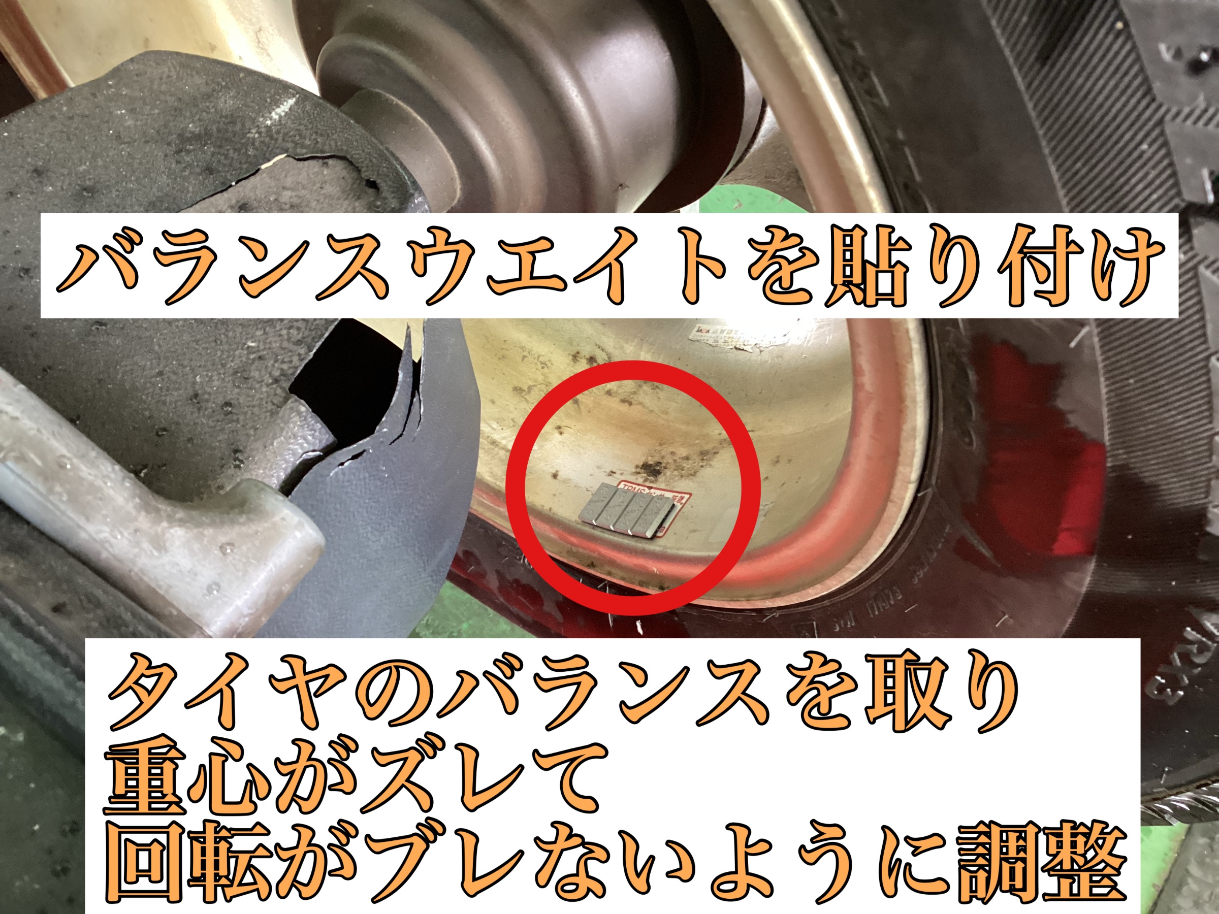 数グラムの調整ですが、タイヤの回転がブレると