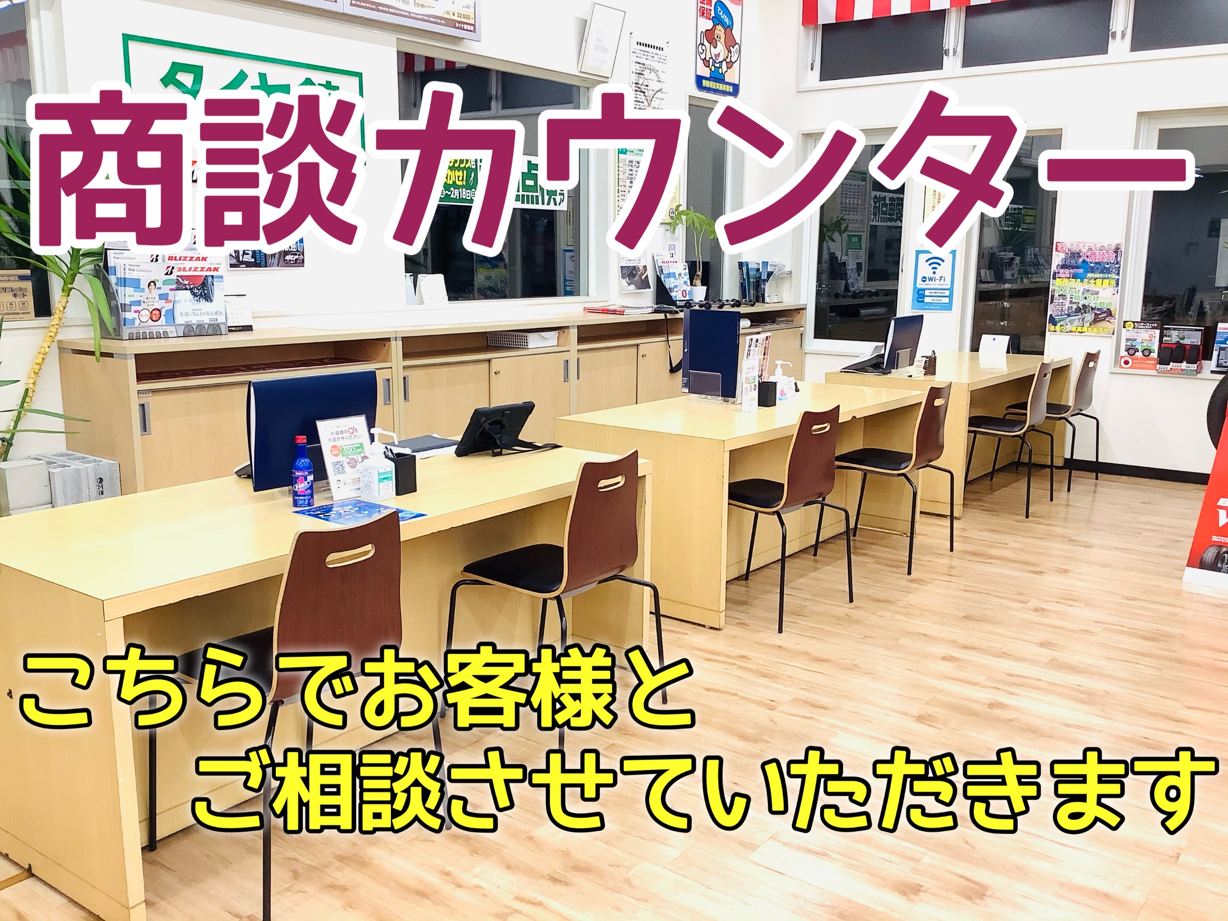 タイヤのご相談などはこちらのカウンターでお伺いします。