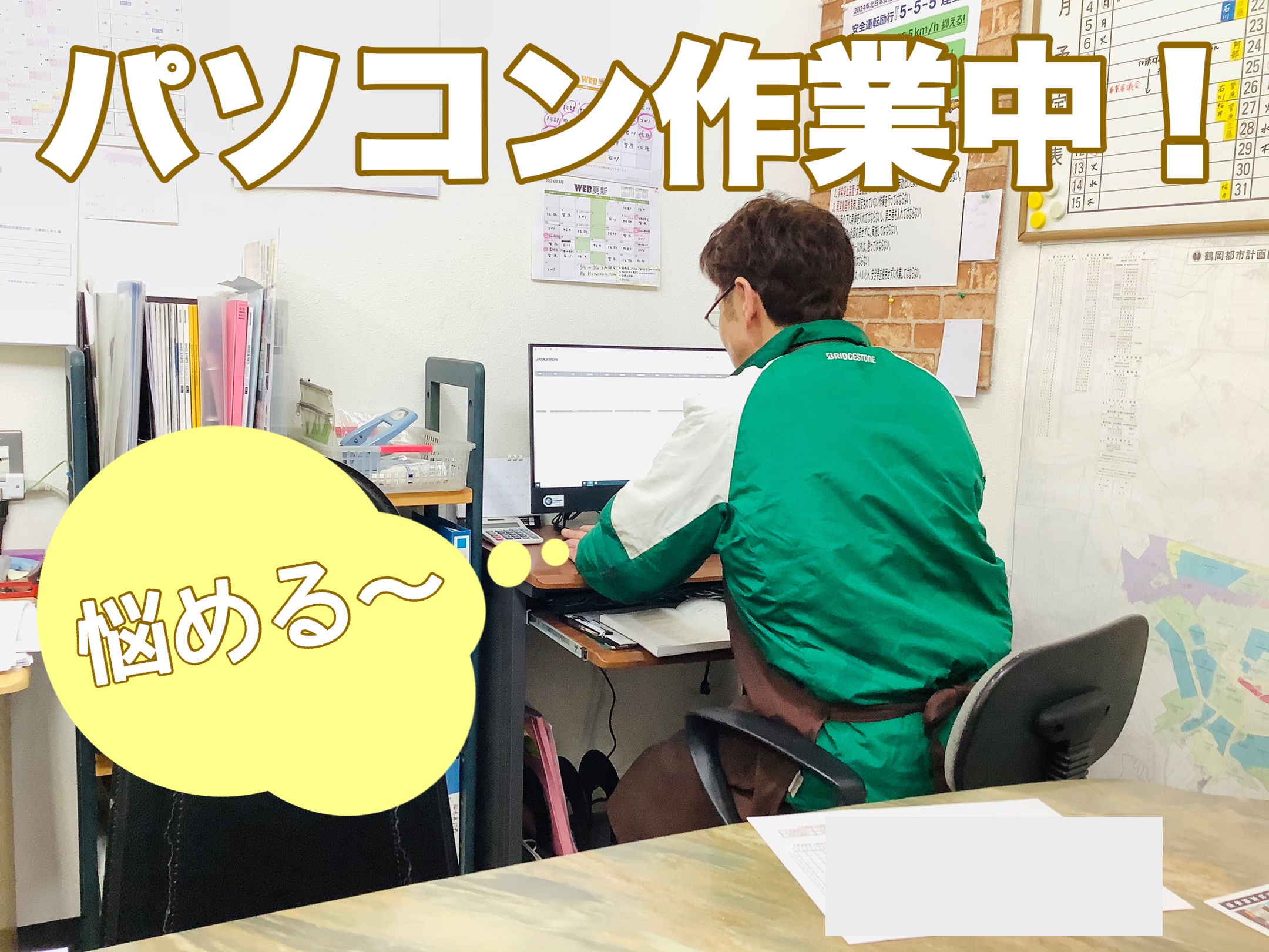 合間に何やらパソコン作業……