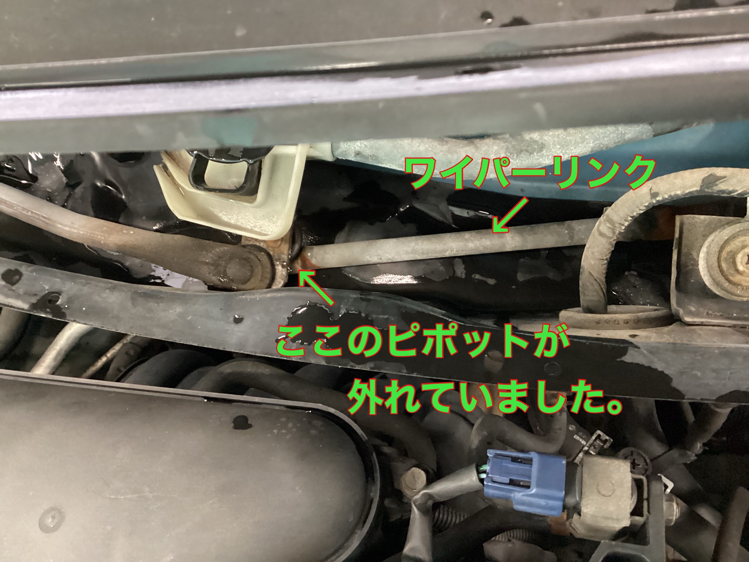 カウルトップパネルを外して点検するとワイパーリンクが外れていました。