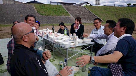 天気も良かったし、青空の下で食べる芋煮、