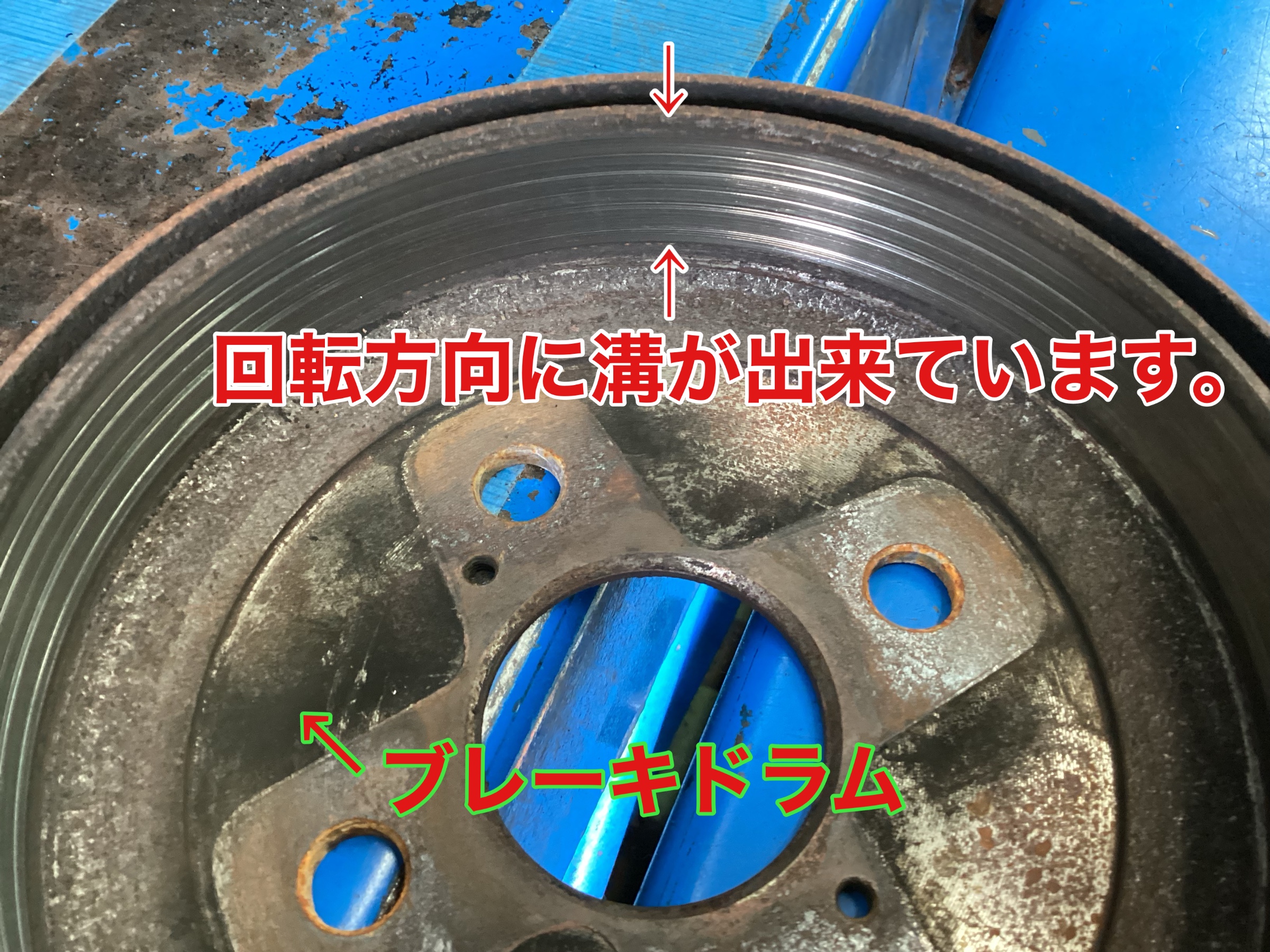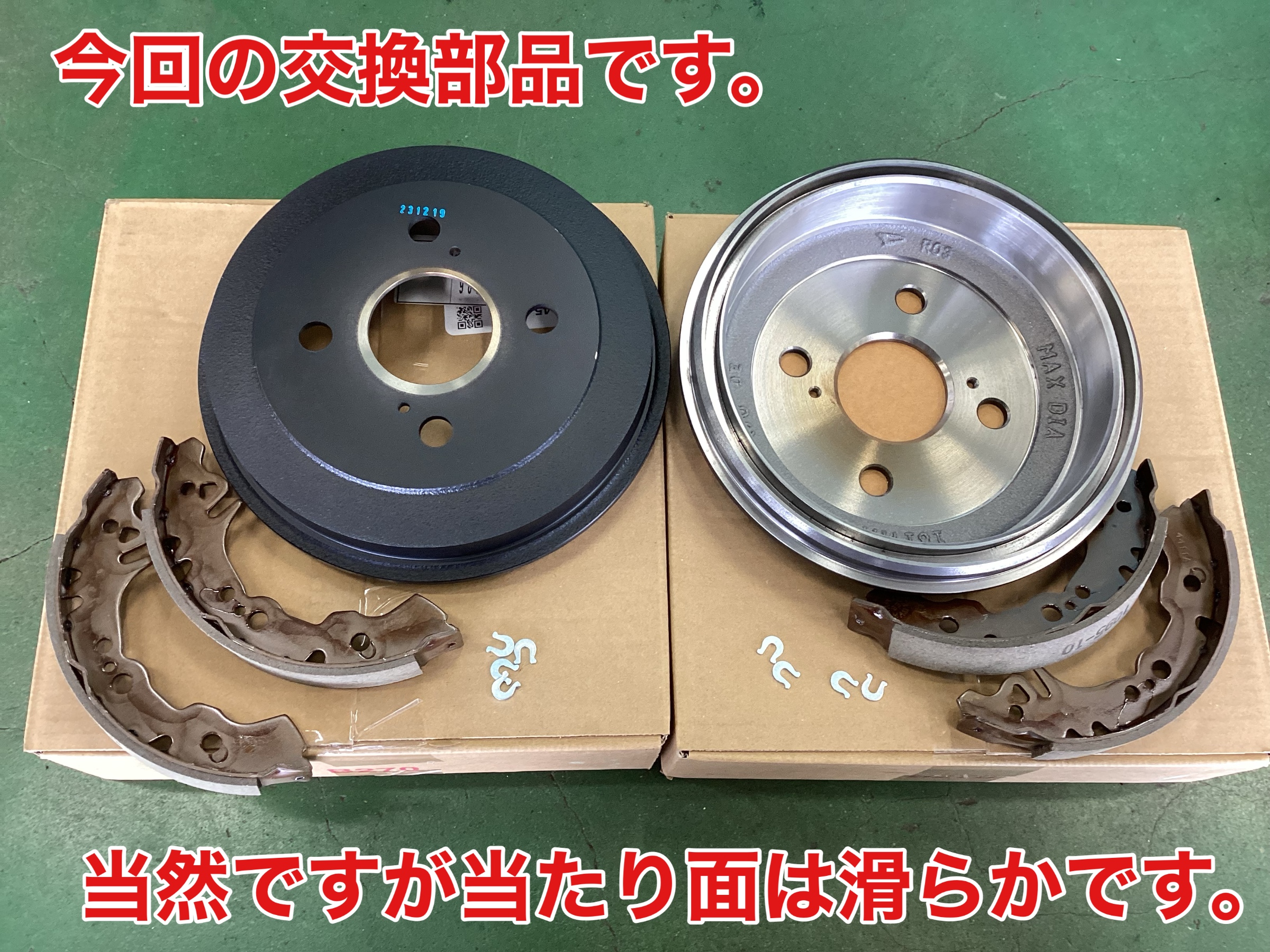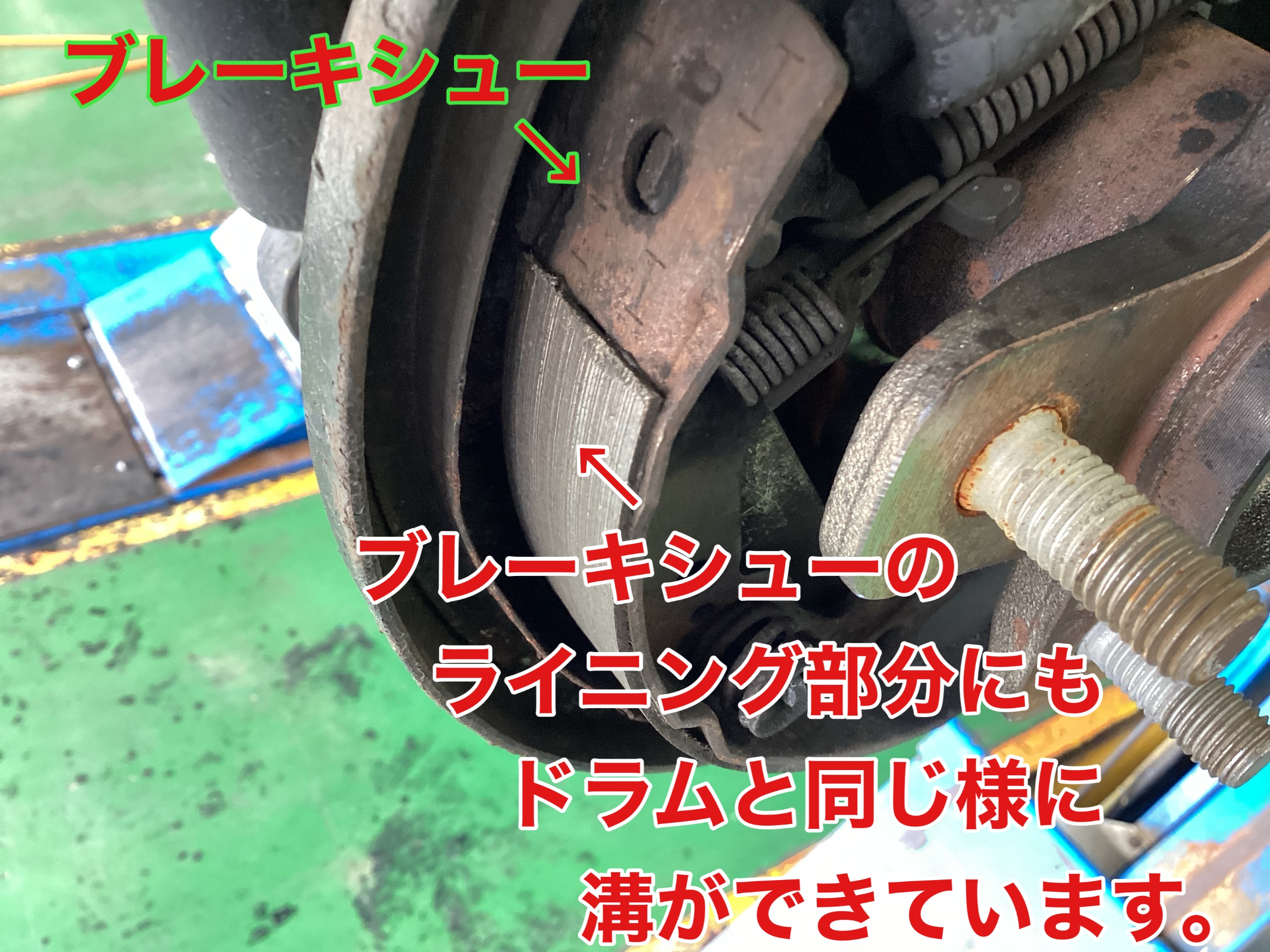 お客様に確認してもらい、ブレーキシューとドラムを部品入庫後に交換する事になりました。
