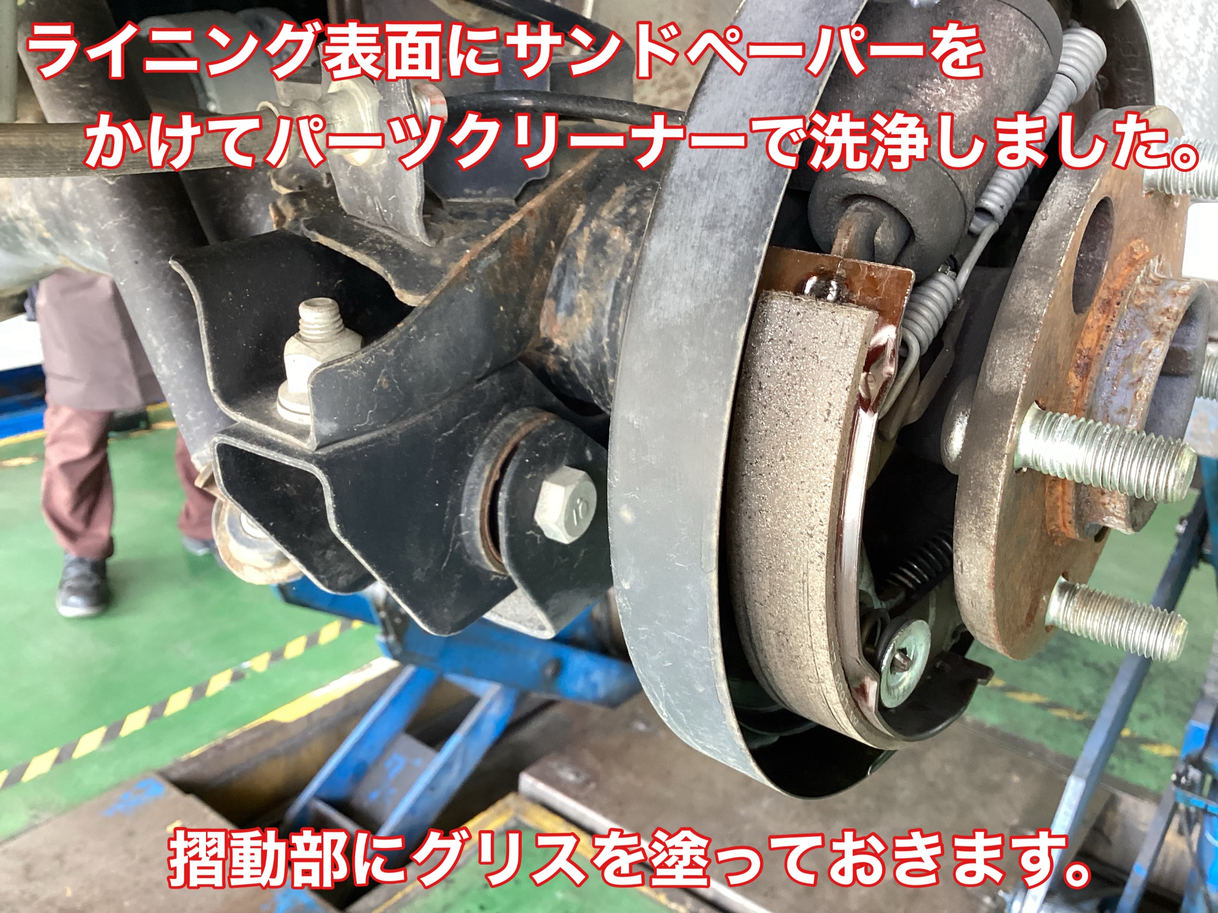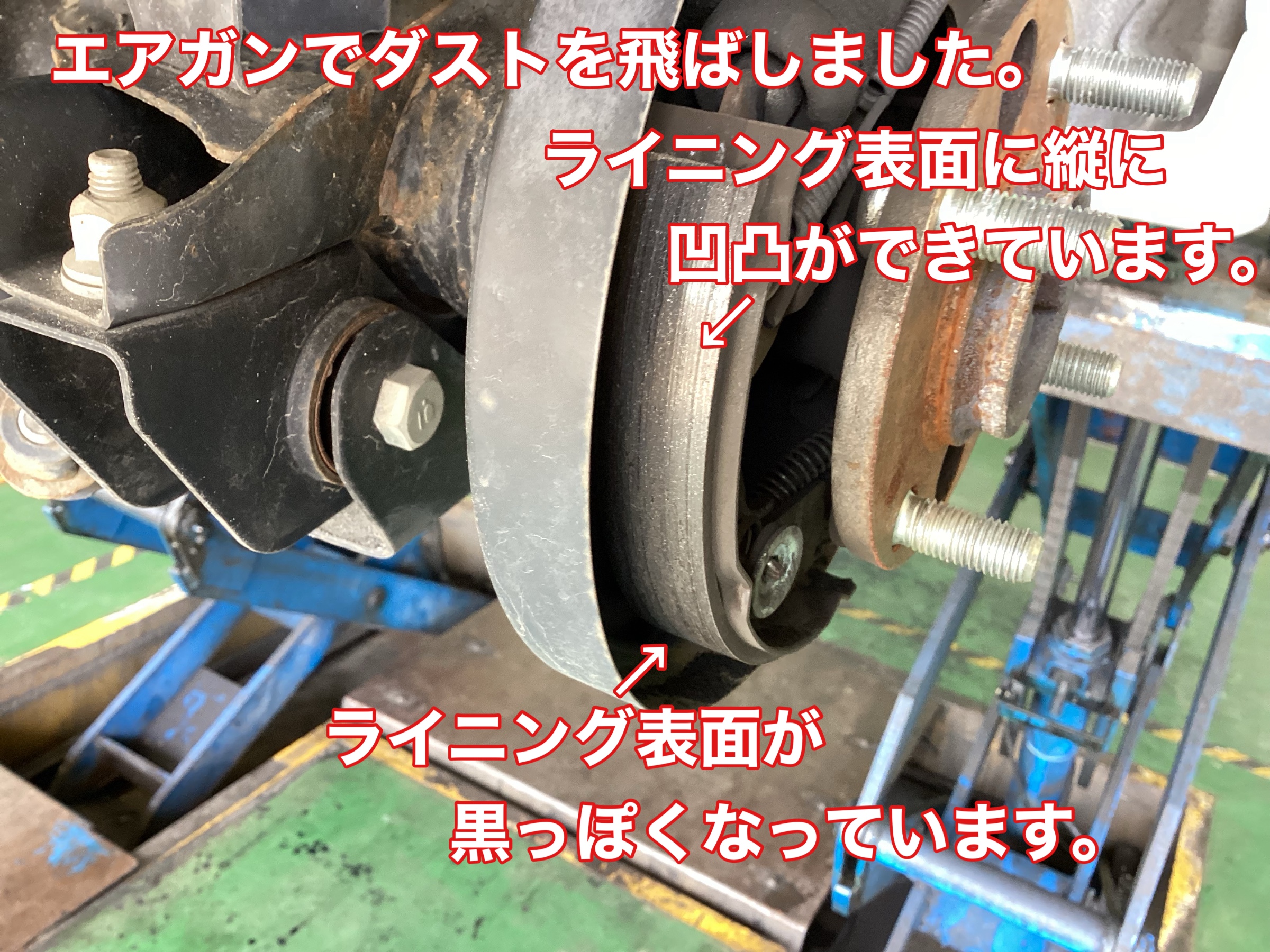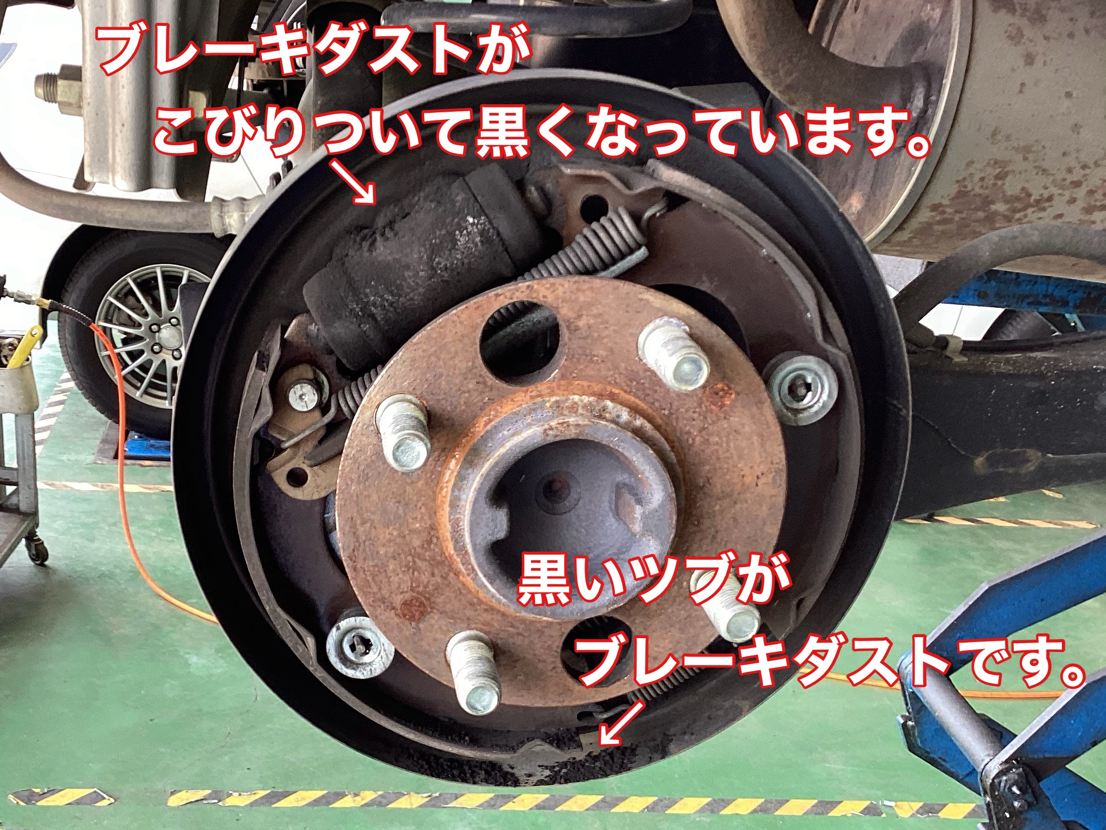 ドラムブレーキの特定整備になるため時間と料金がかかる旨を説明して