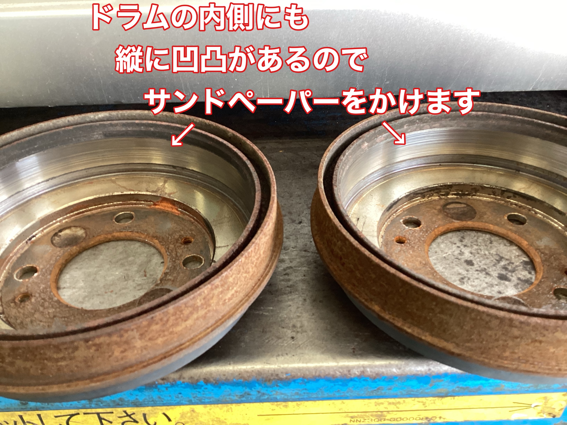 今回の異音はおそらくドラムとライニングのアタリが原因と考えられたので凹凸はサンドペーパーでキレイにしていきます。