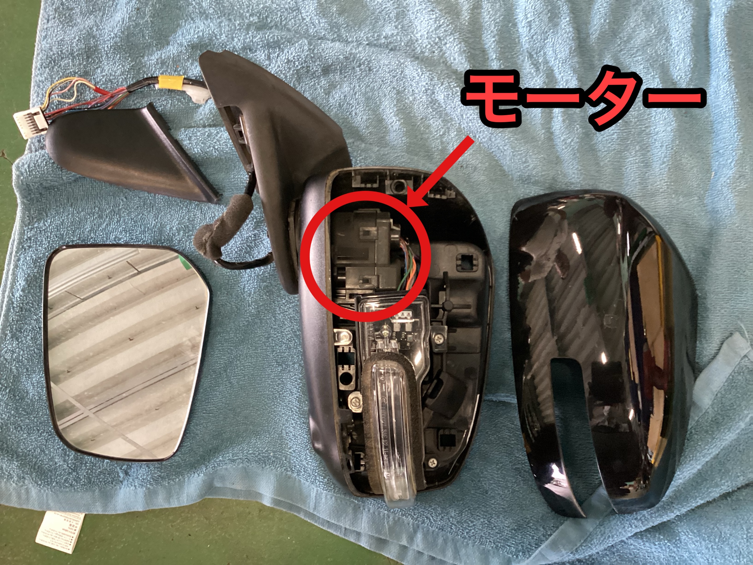 サイドミラーを取り外し、分解してモーターを取り外します
