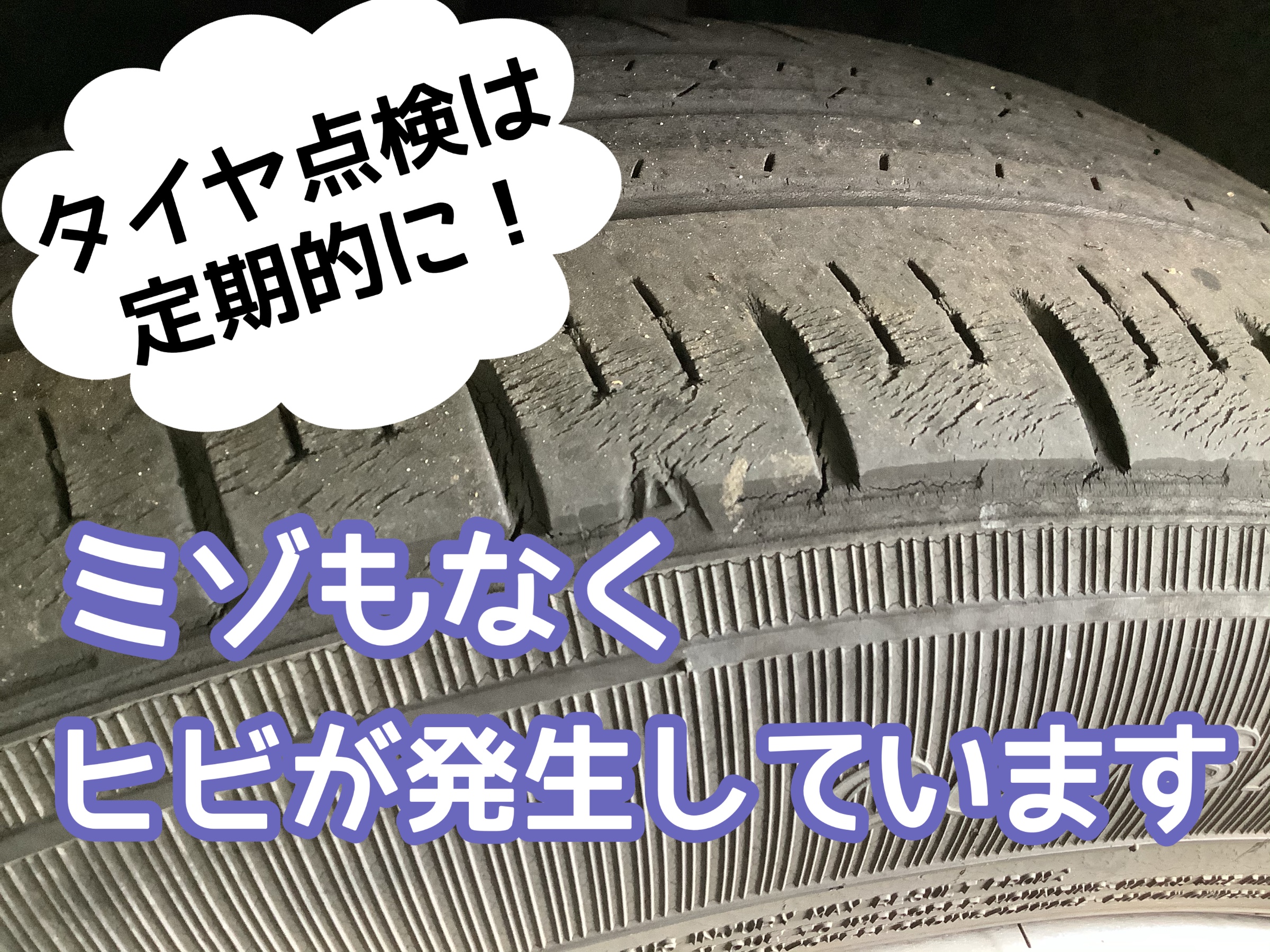 今まで使用していたタイヤは、8年位経ち溝もないんですが、ゴムも劣化しヒビも大分入ってきていました。