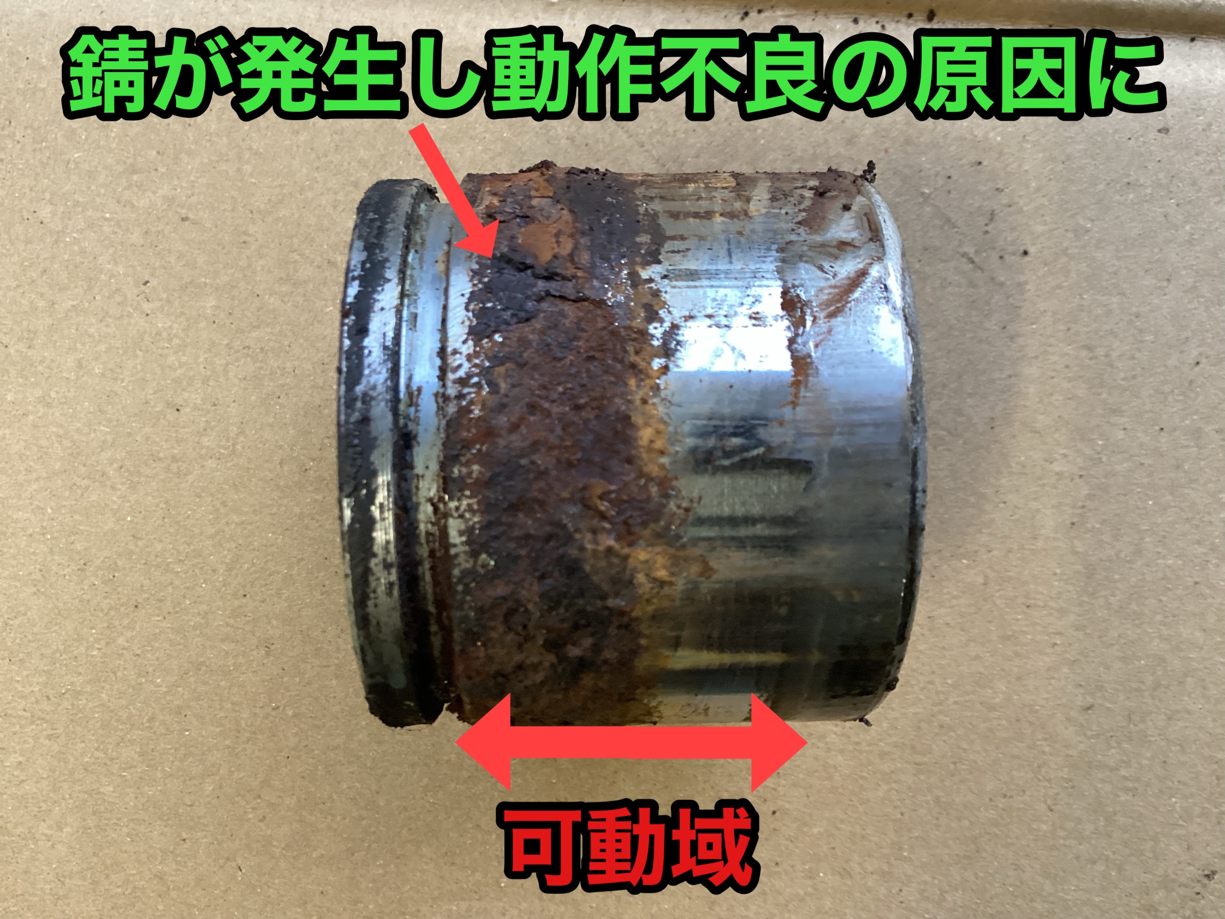 パッドを押すシリンダーの動きが渋く、ローターとパッドが離れずに接触したままで