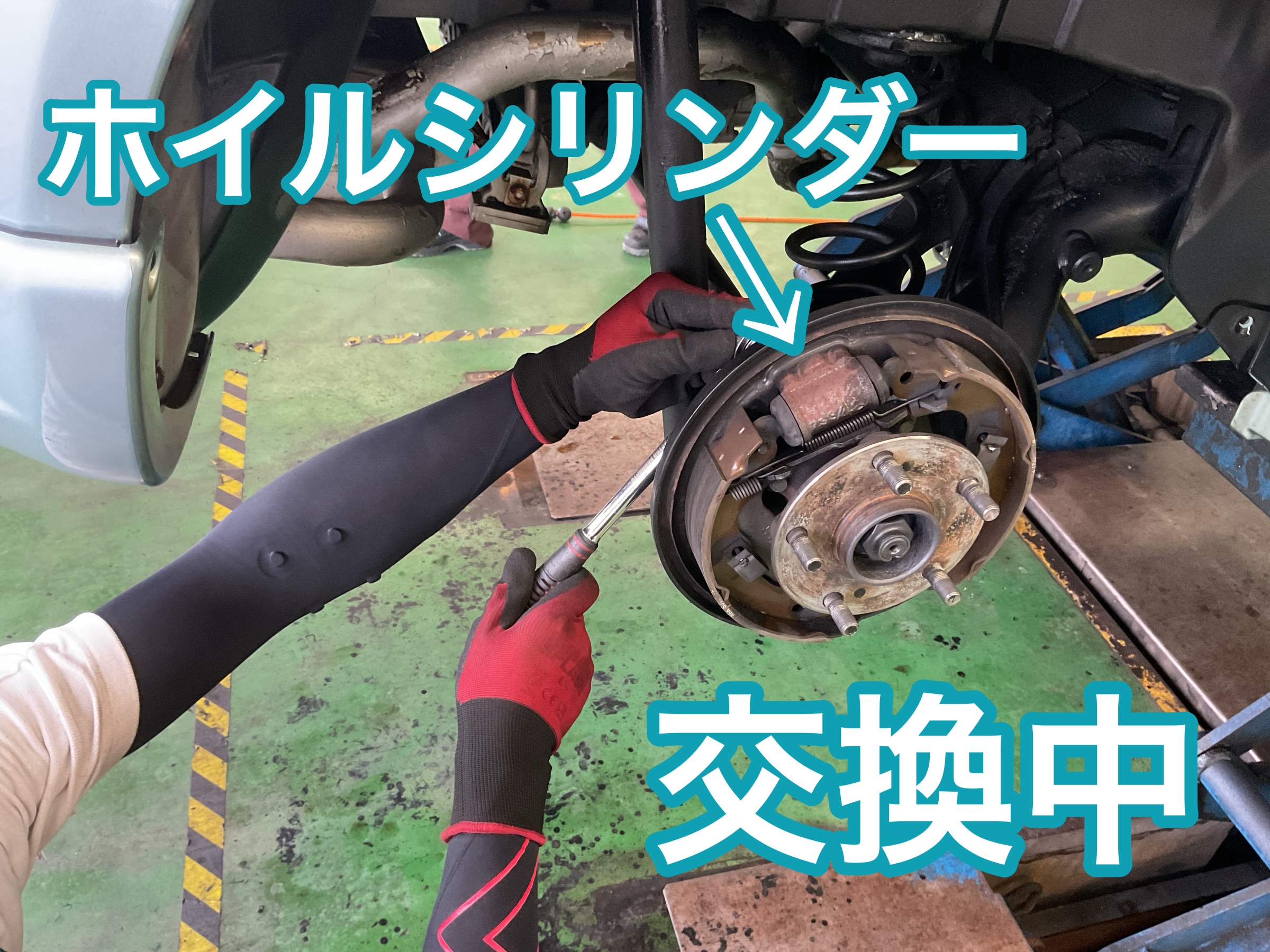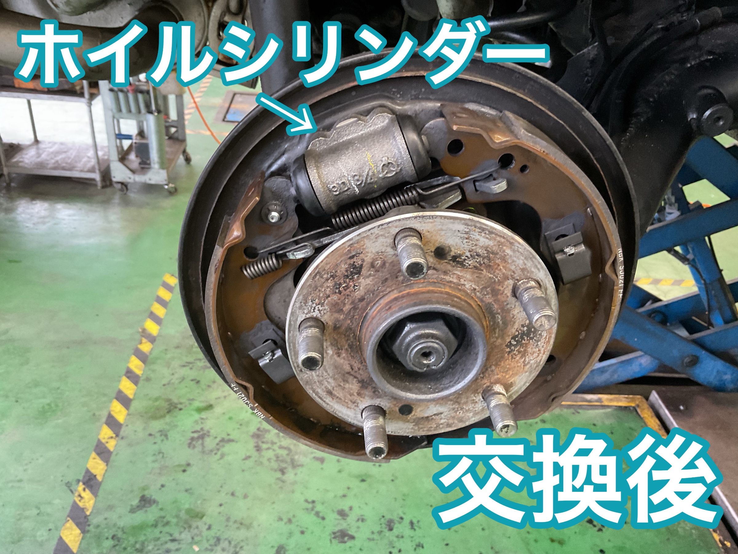 リアのホイルシリンダー交換です。ブレーキシューを押し広げる役割をしています。