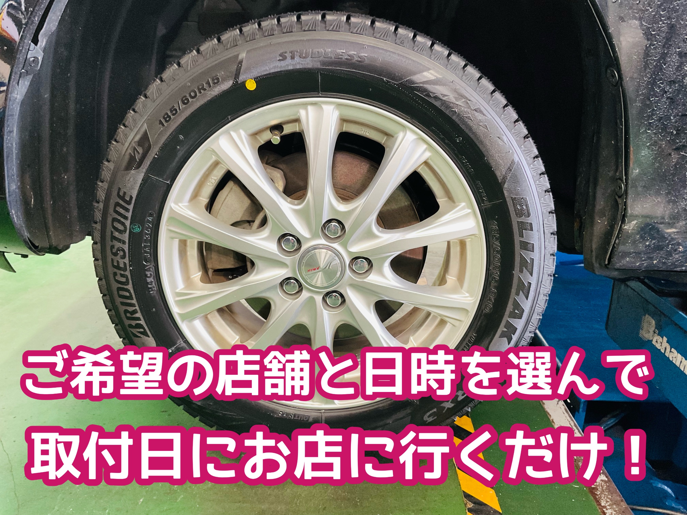 タイヤは店舗に届くから、来店するだけ。予約しているからスムーズに作業開始できます