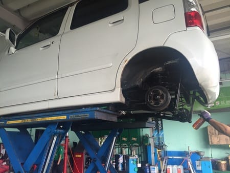 車検で行う下廻り塗装とサビ止めは少し違って…透明な特殊液を塗布します!