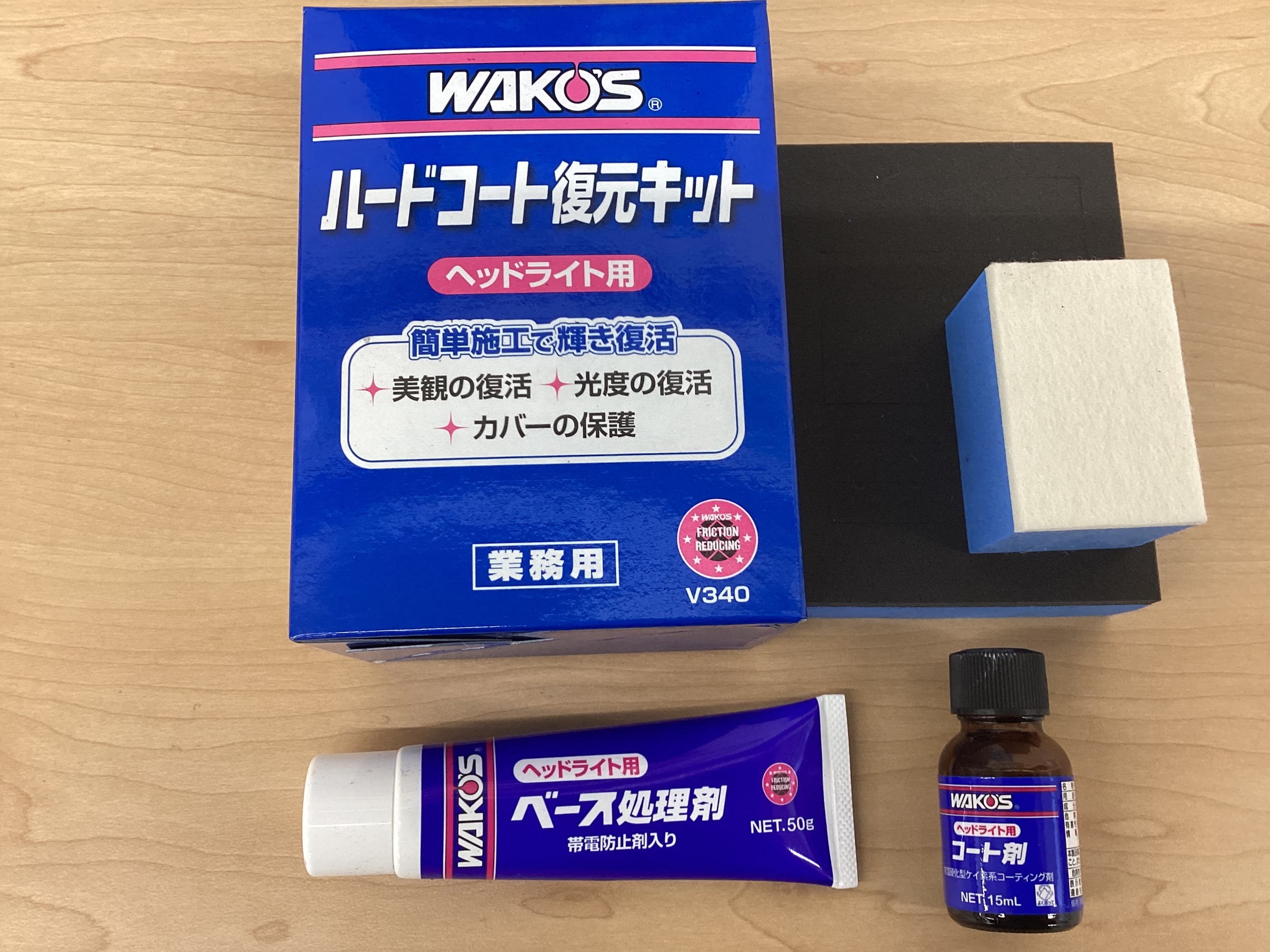 当店ではワコーズのハードコート復元キットを使ってヘッドライトのコーティングをします。
