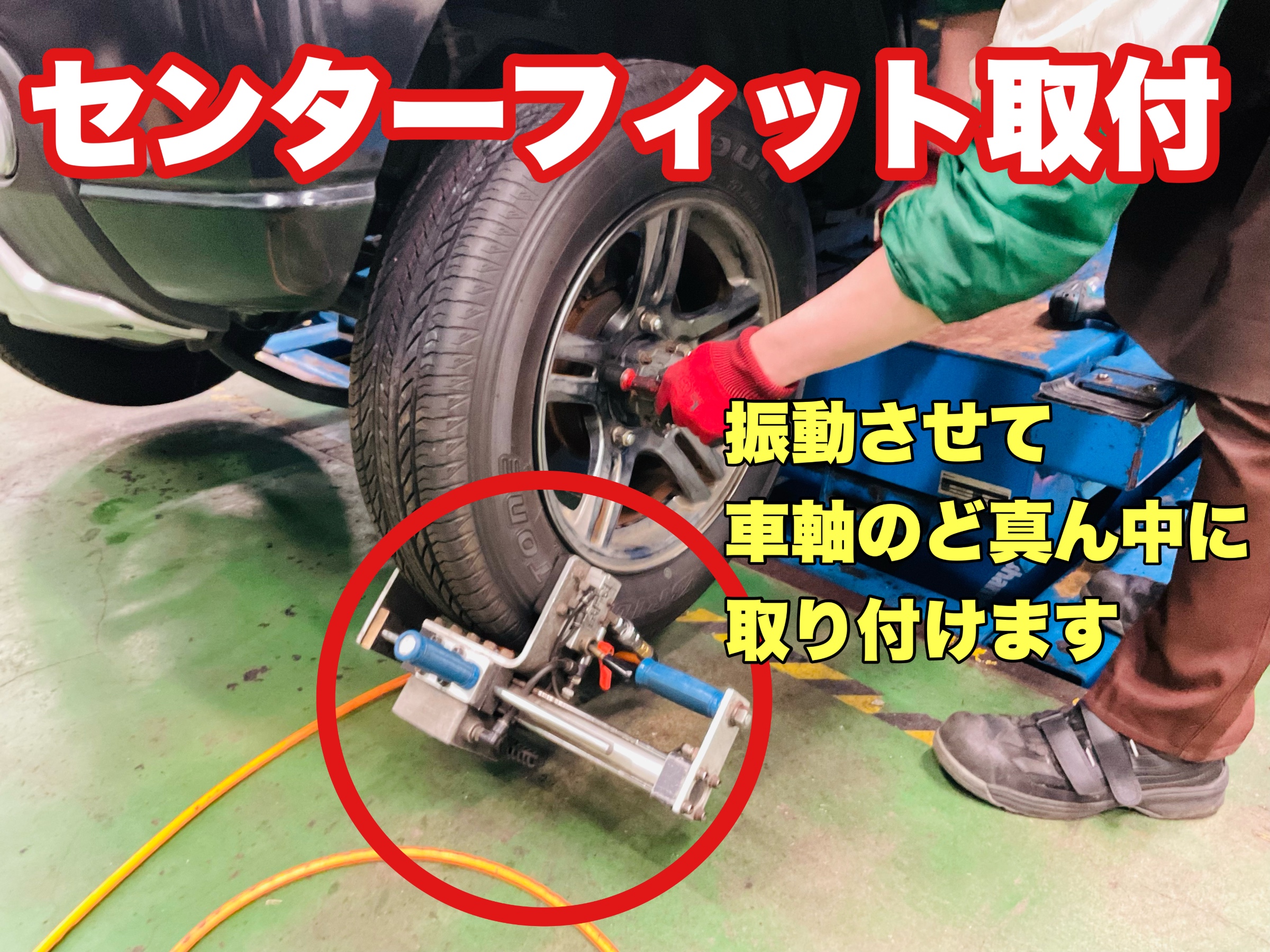 均一かつ正確にタイヤの中心を車軸に装着します。