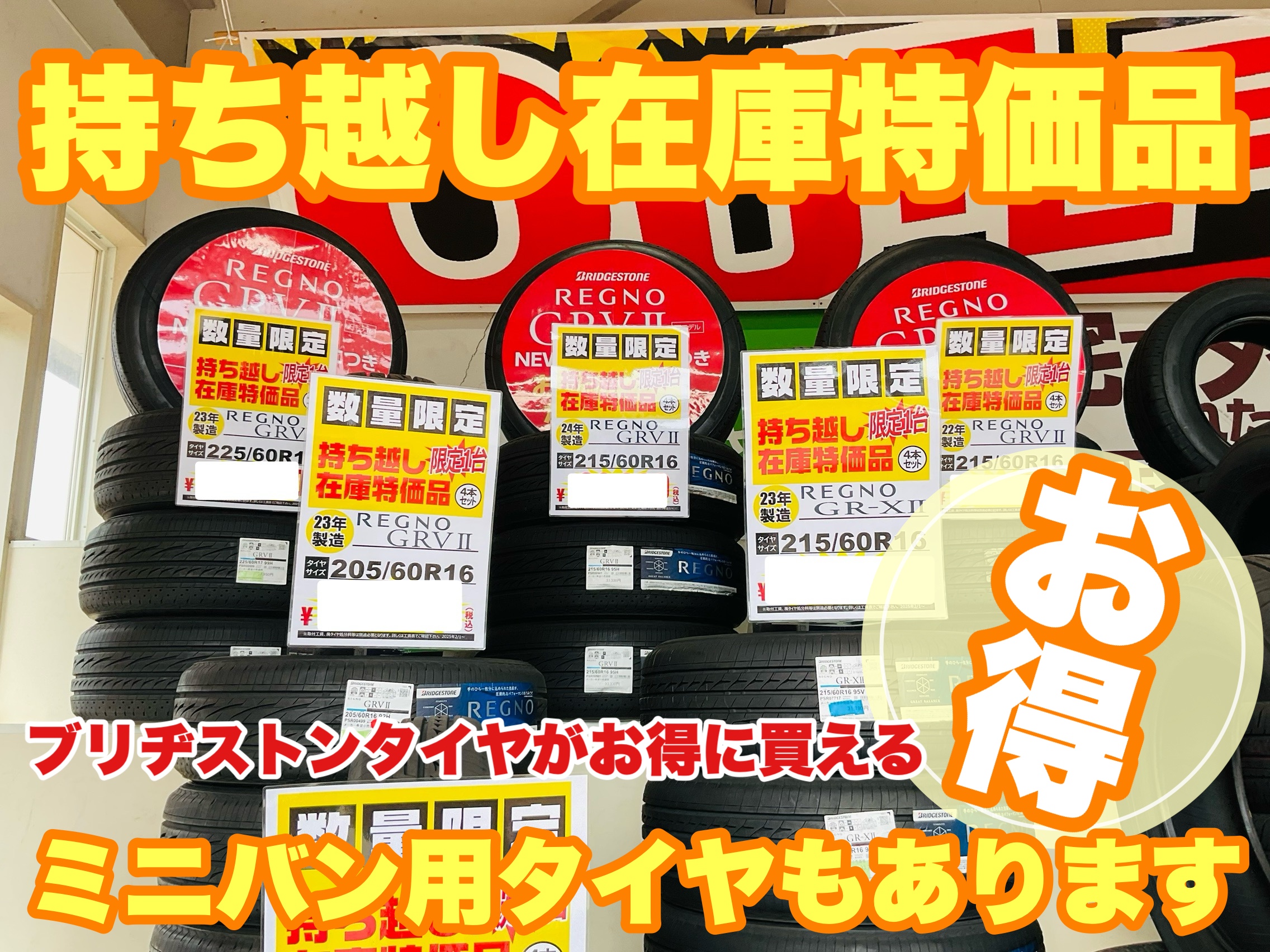 ミニバン用在庫持ち越し特価品もあります!