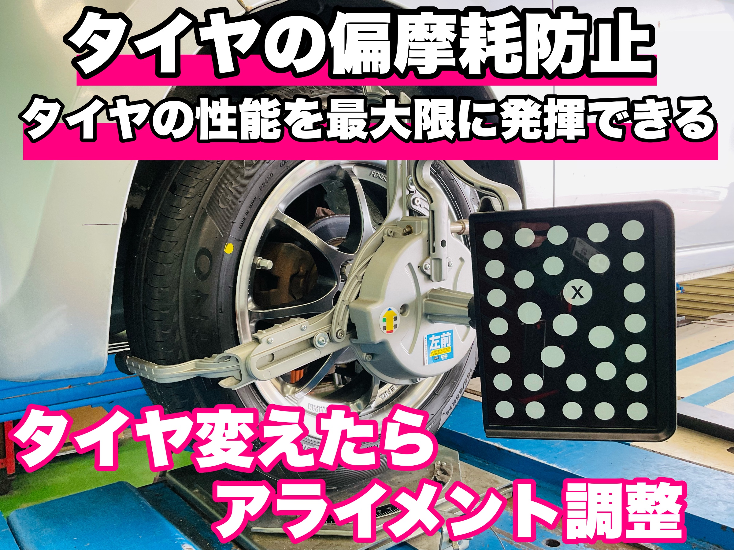 タイヤ交換は、アライメント作業を行ういいタイミングですね。