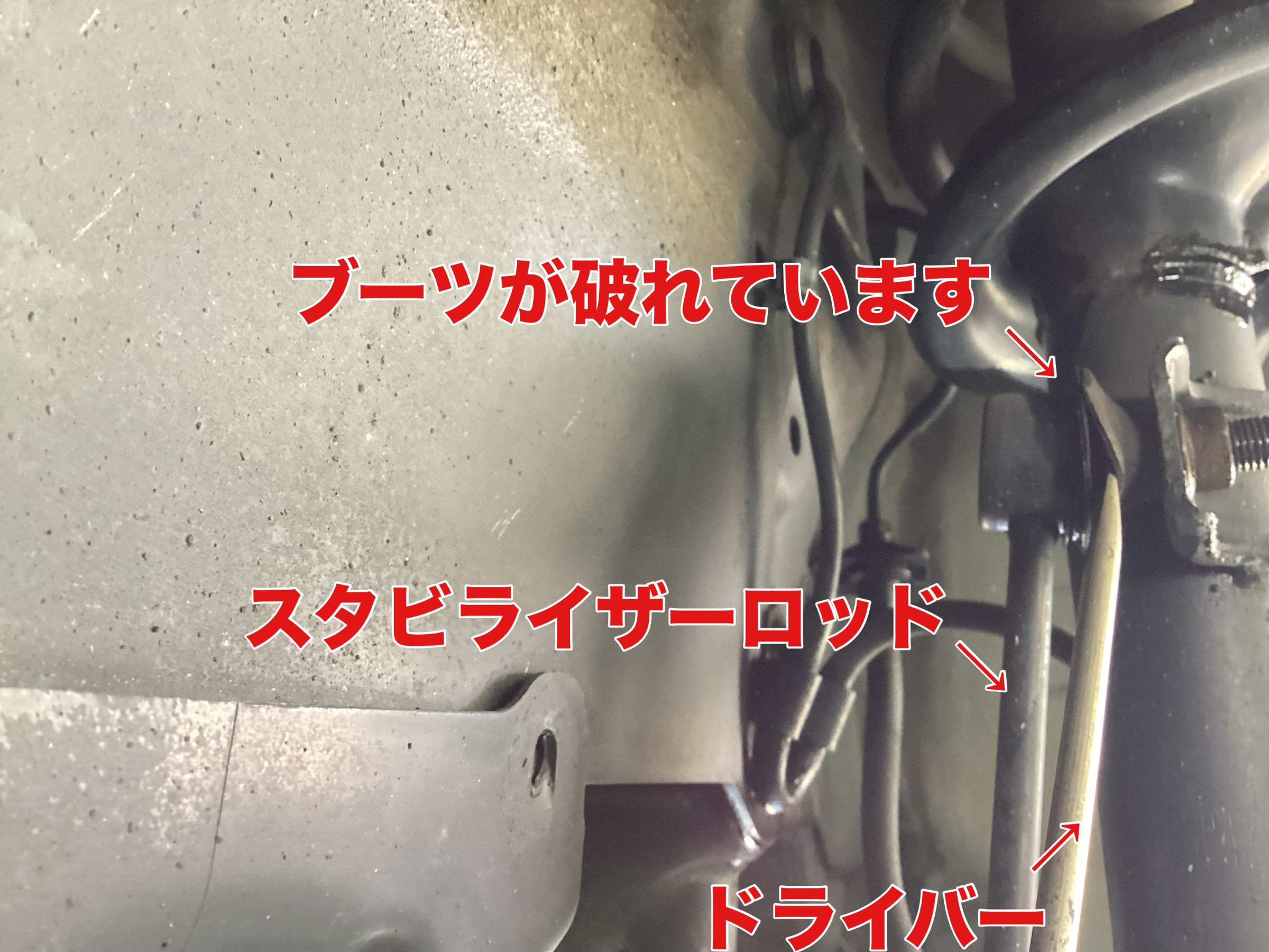車検前の点検にスイフトで来店され、スタビライザーロッドのブーツが