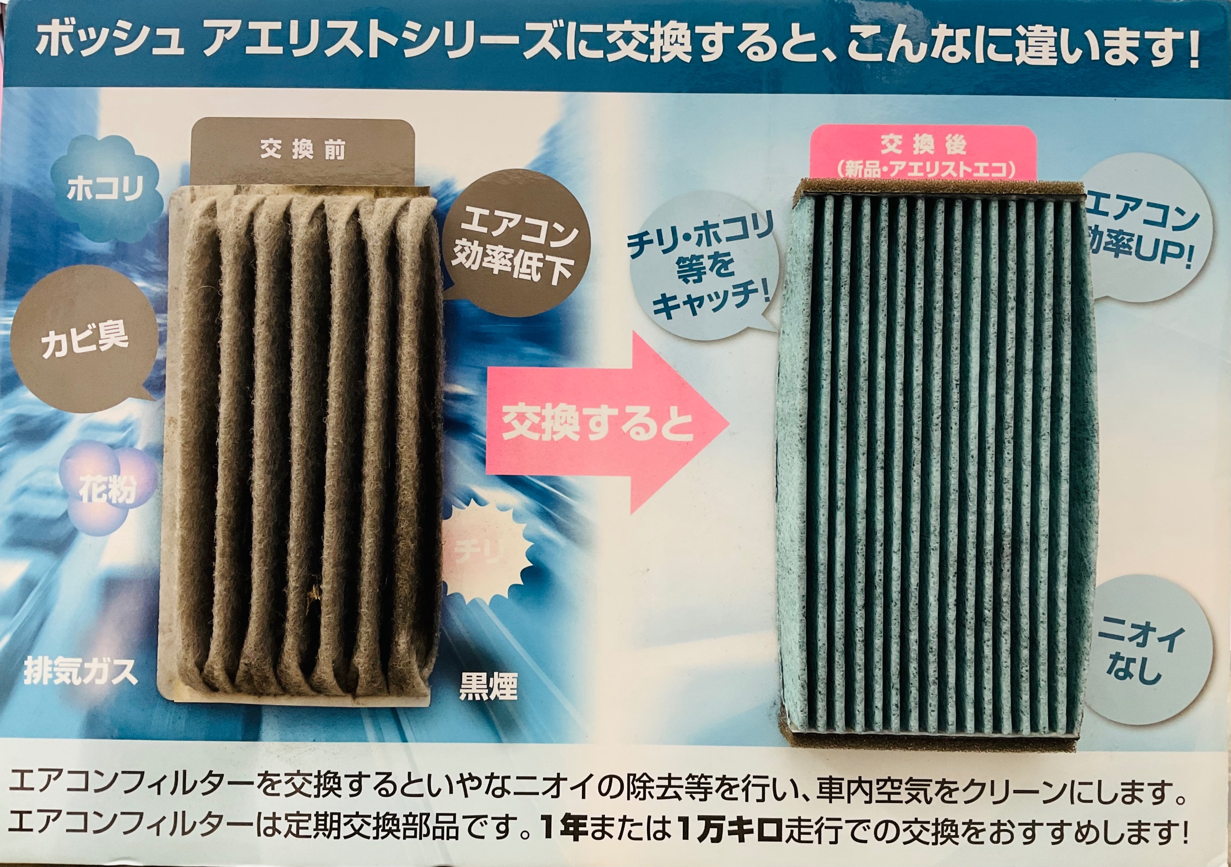 交換の目安は1年、又は10000kmです