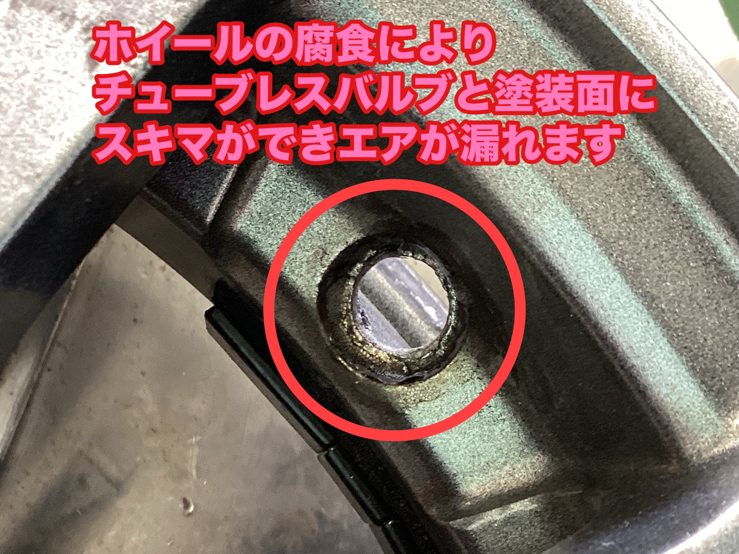 下の写真のようにホイール側の腐食で塗装が剥がれ