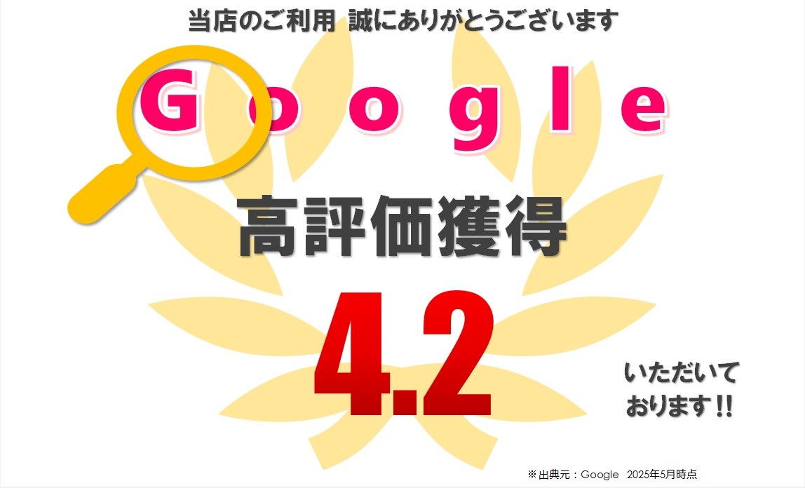 当店はGoogle口コミ評価 『4.2』をいただきました。