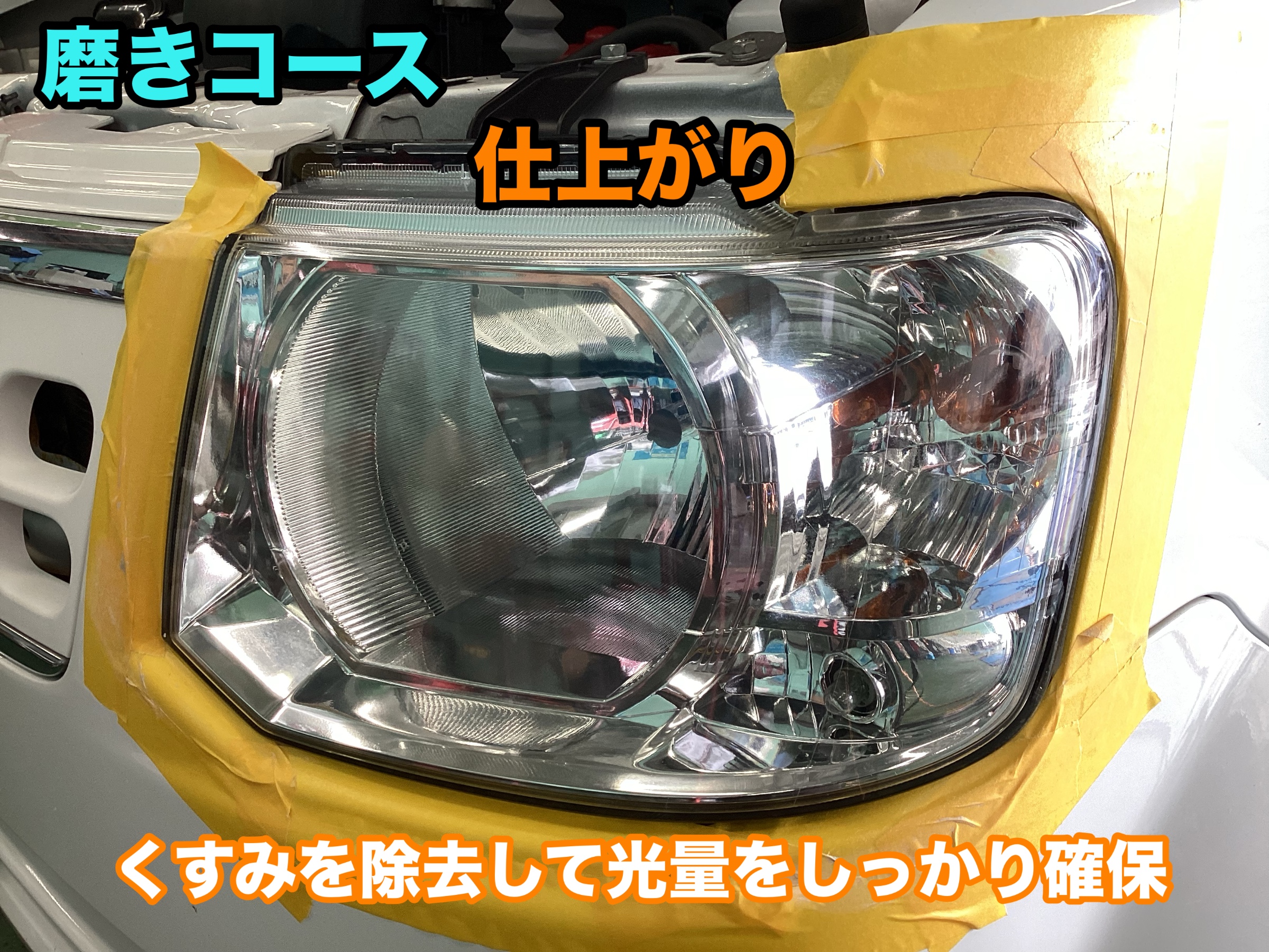 磨きによって曇りを除去し、ヘッドライト表面をキレイな状態へ