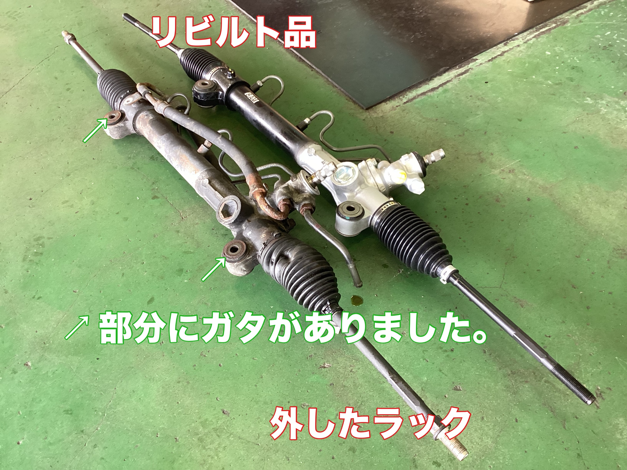 ステアリングラックの取り付け部のガタが原因と分かり交換する事になりました。