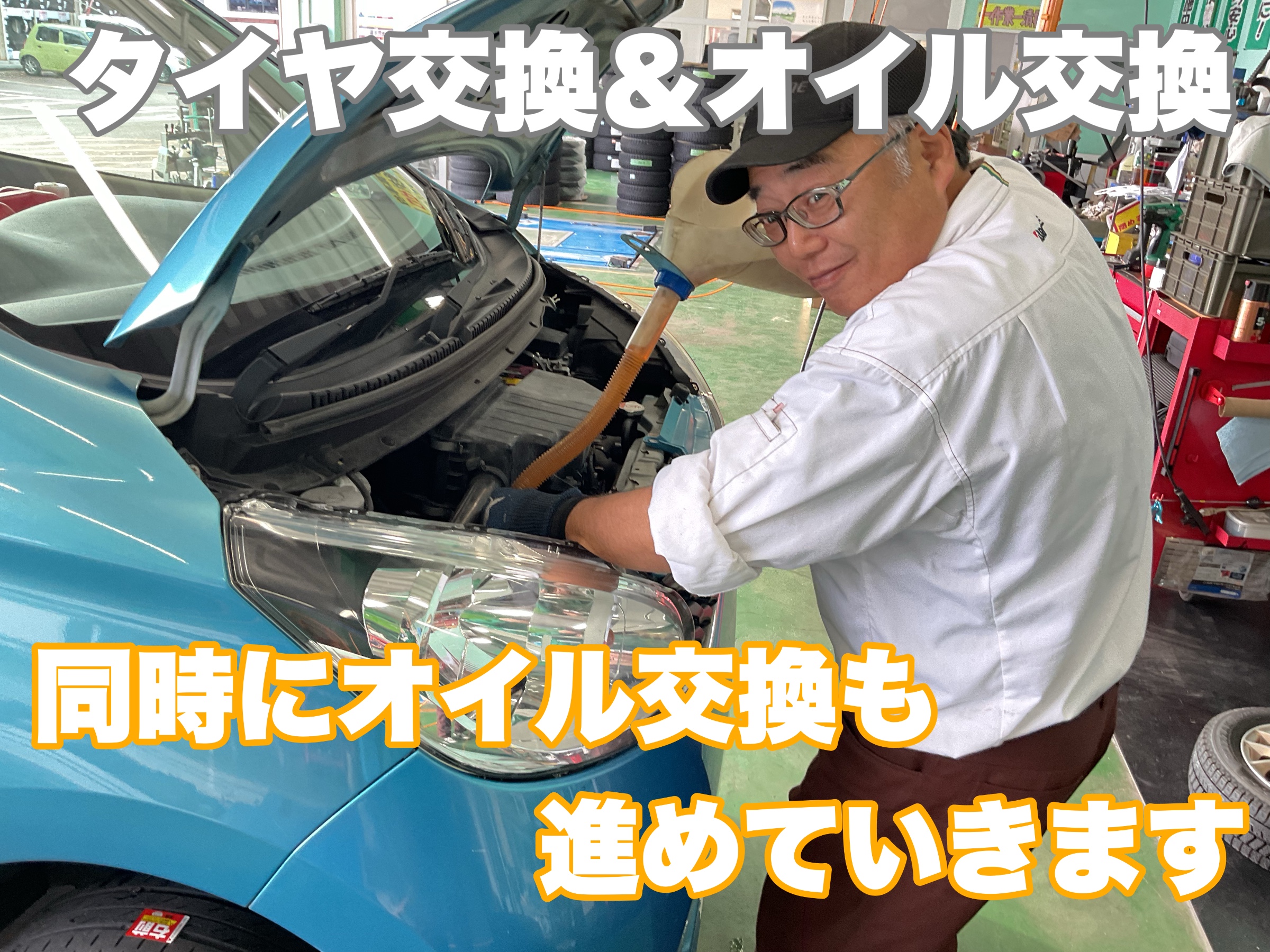 デイズ タイヤ交換と一緒にオイル交換もできます。