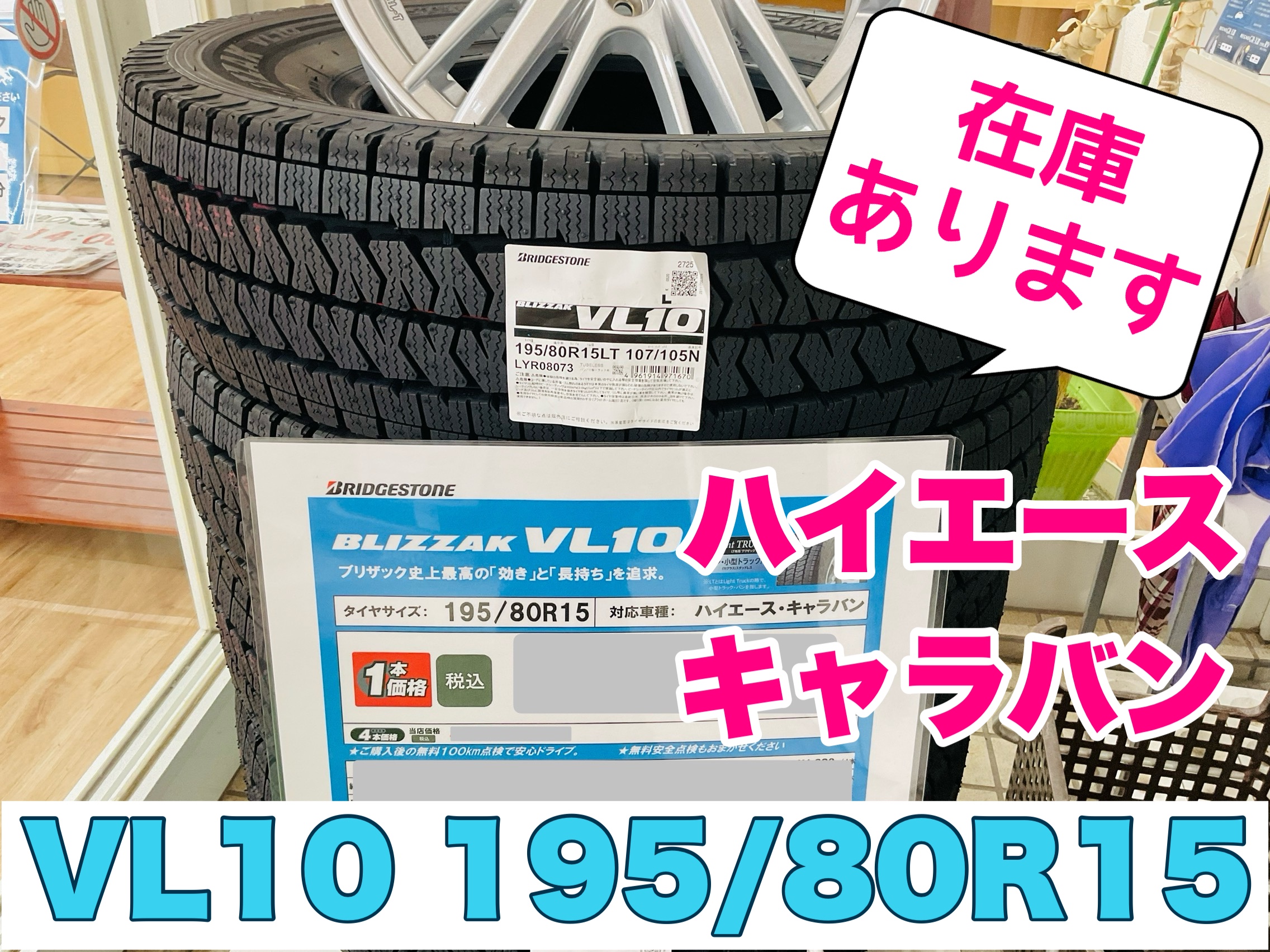 ハイエース キャラバンのスタッドレスタイヤ在庫あります。必要な方はお早めに☆