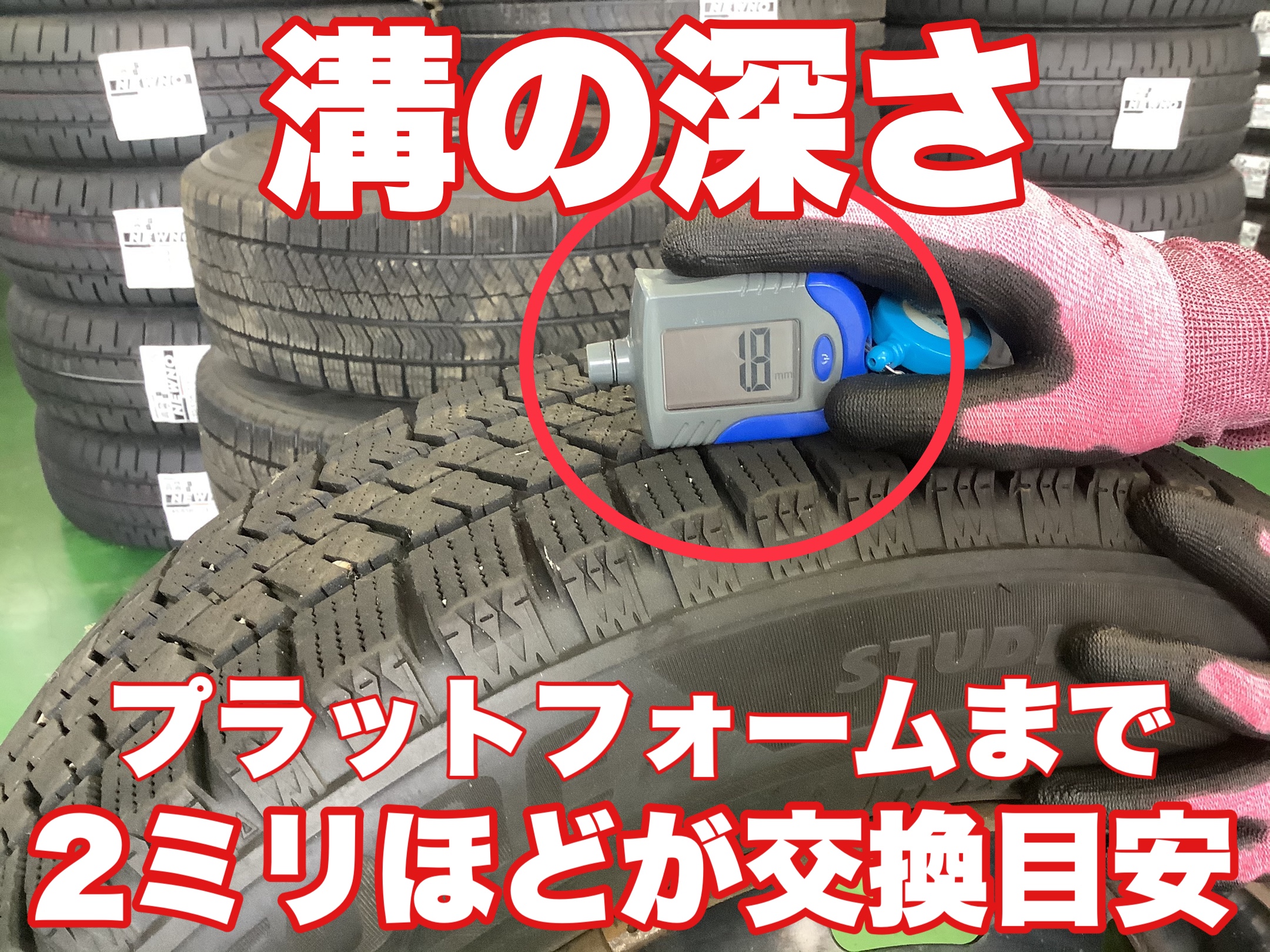 タイヤの溝もプラットフォームまで2ミリない場合は交換時期となり、