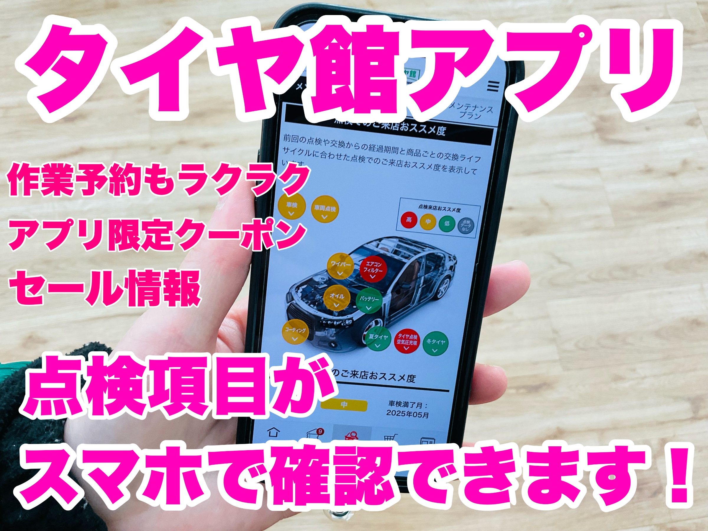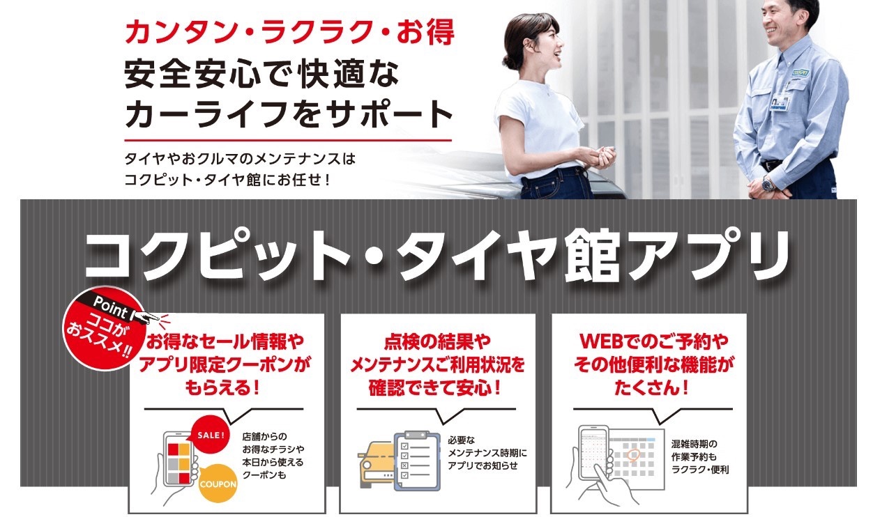 タイヤ館アプリのご登録おねがいします。