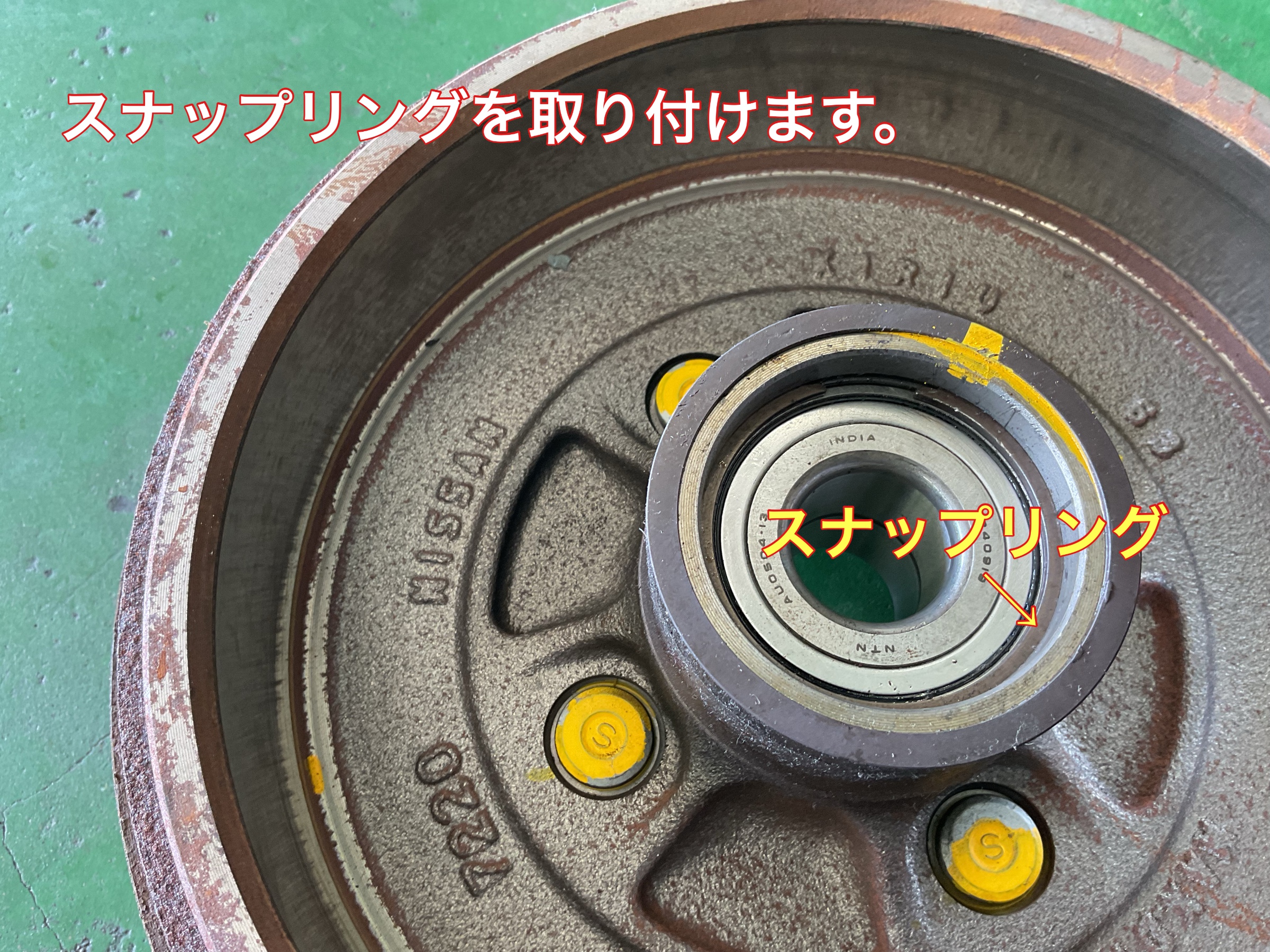 ブレーキドラムを取り付け、タイヤを取り付けます。