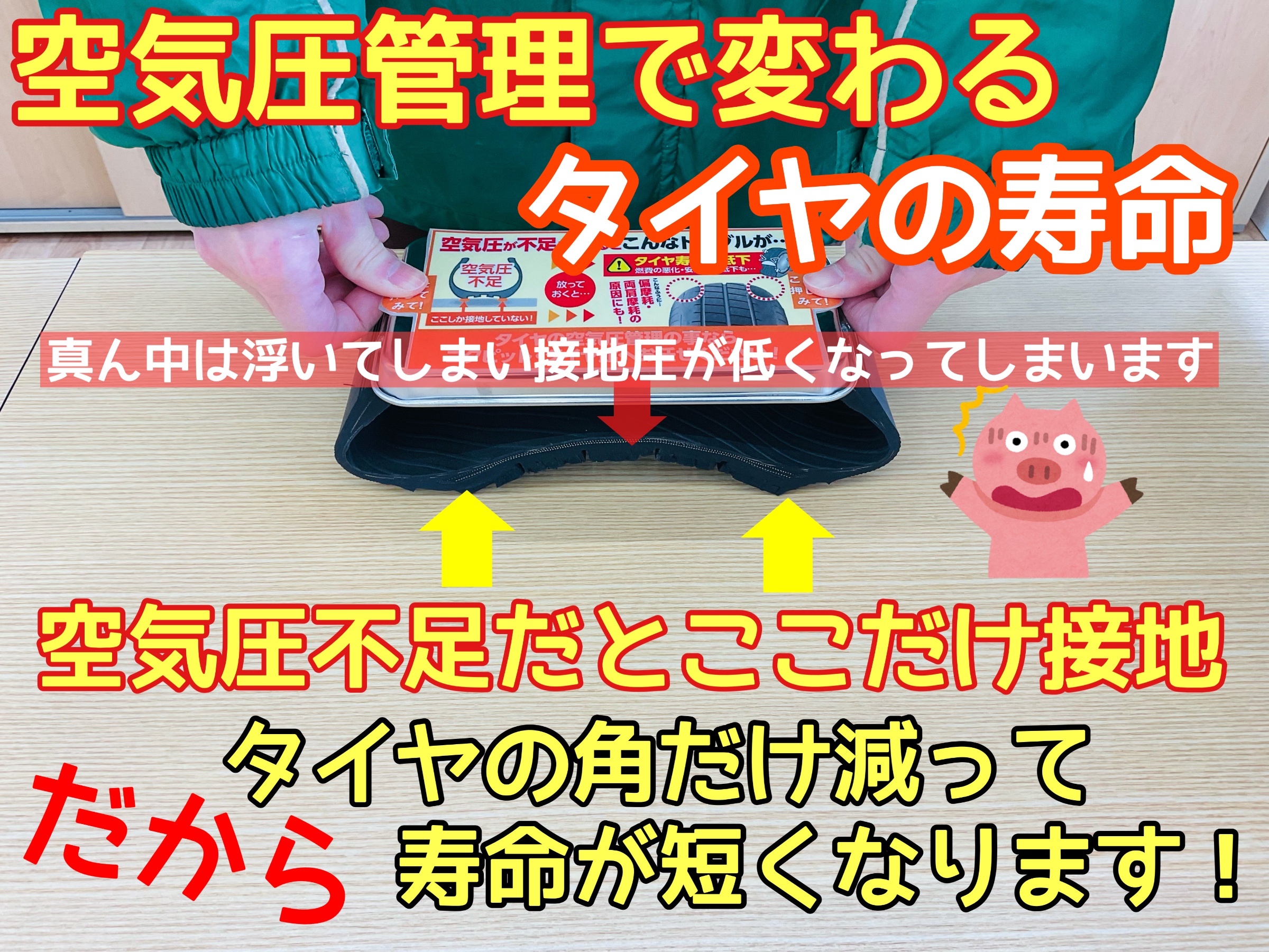 タイヤの空気圧が適正でないとタイヤの寿命は大きく変わります。