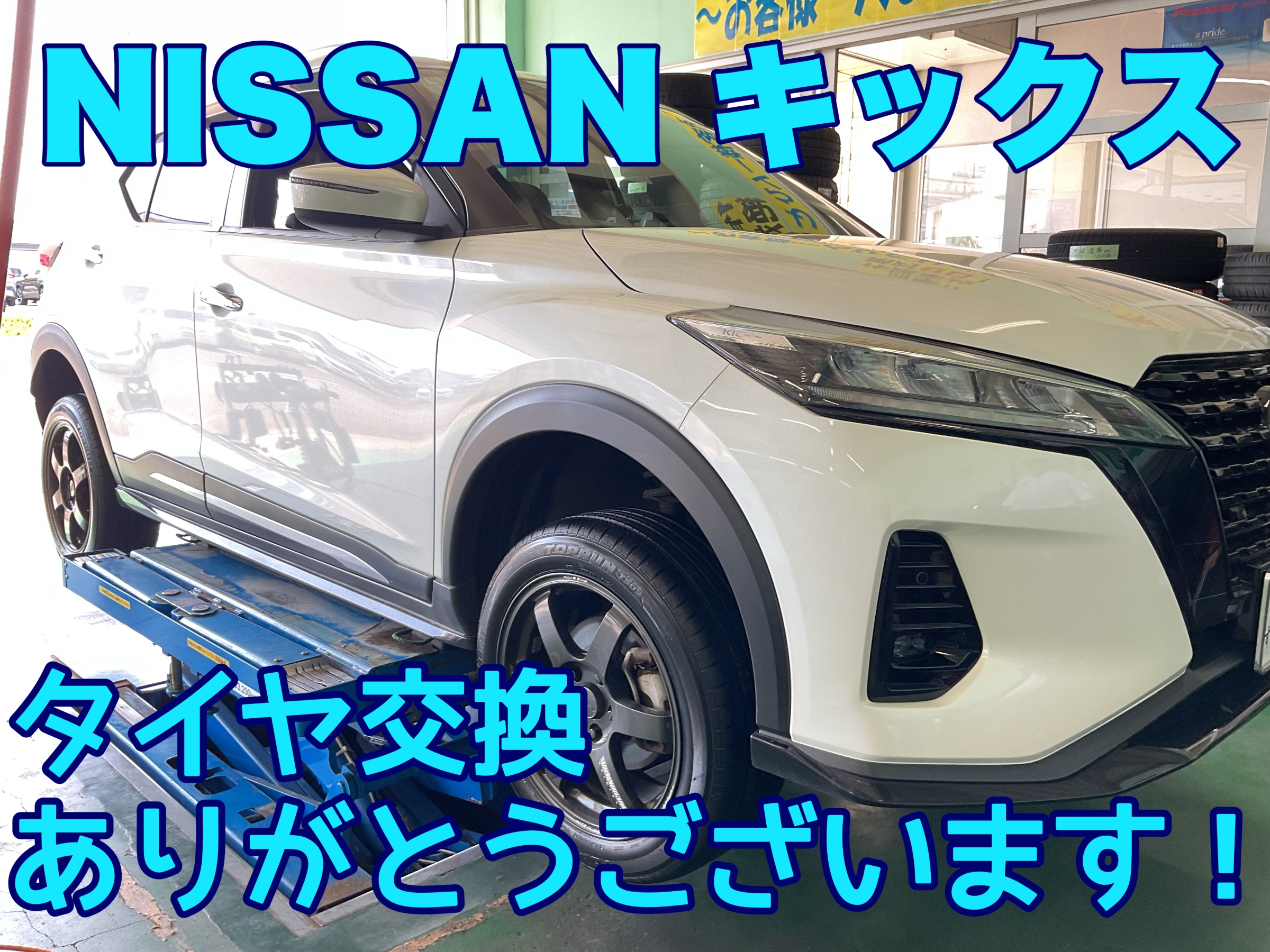 ブリヂストン工場製「TOPRUN」タイヤが新登場!キックスにお取付けさせていただきました。