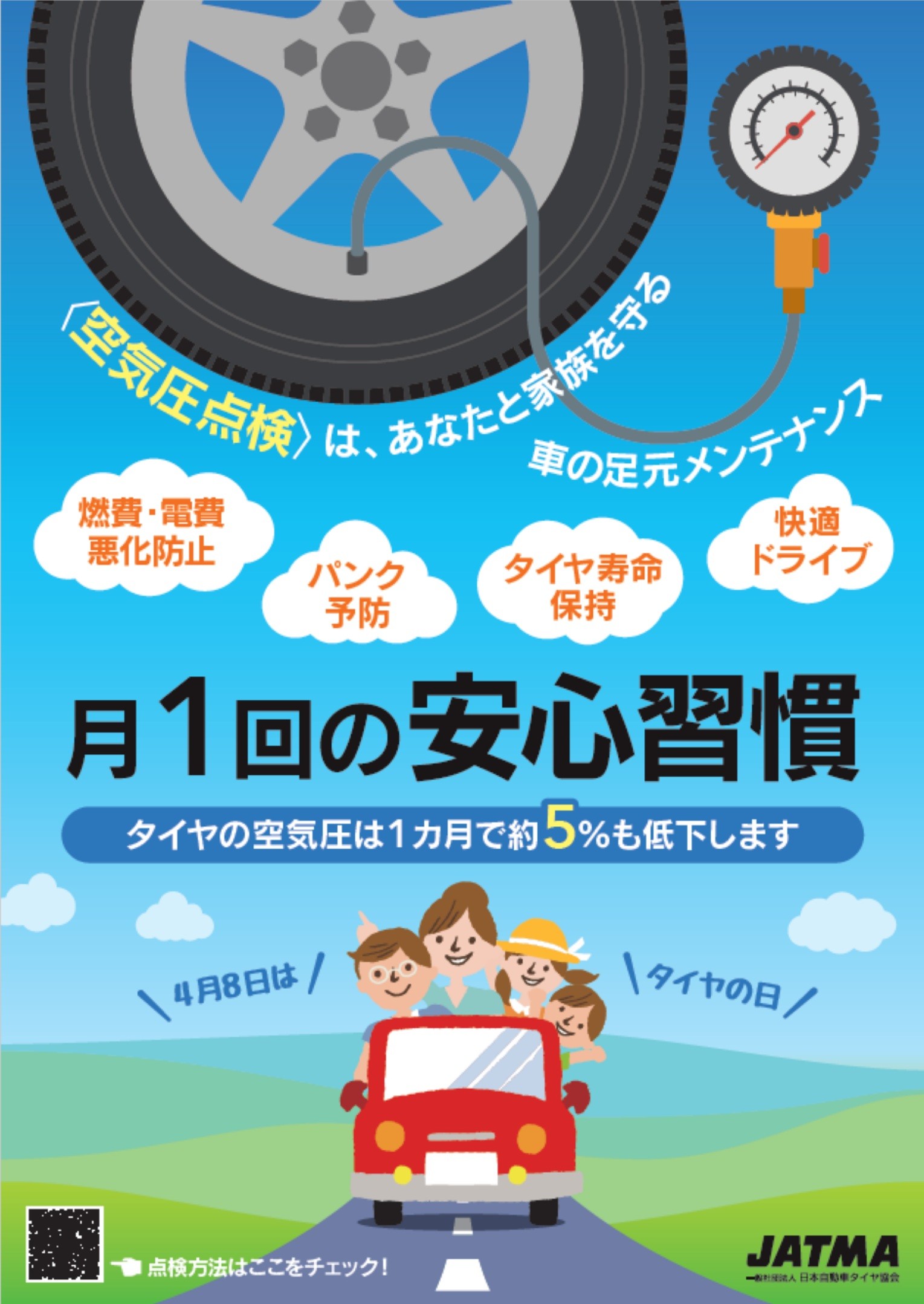 「1か月に1度の空気圧チェック」がとても大切です。