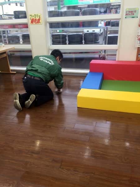 店内もキレイにしようという事で・・・床のWAXがけを始めました!!