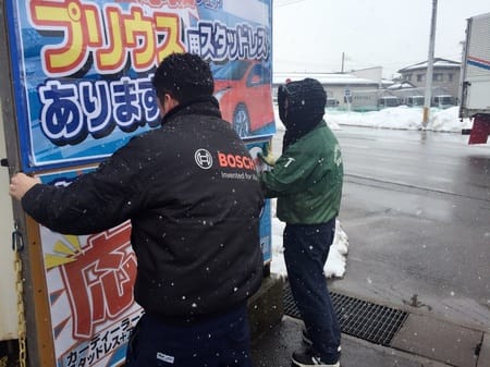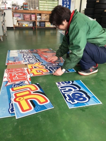 今日はチラチラ雪が降っていたので、外での貼り付けはものすごく寒かったです(>_<)
