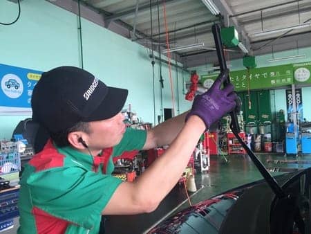 タイヤ館の安全点検ではタイヤの点検はもちろん、空気圧調整やオイル、バッテリーの