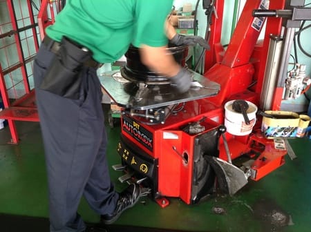 タイヤ交換はまず今までのタイヤをホイールからハズし、ホイールを磨いてから新しいタイヤに履き替えます!!
