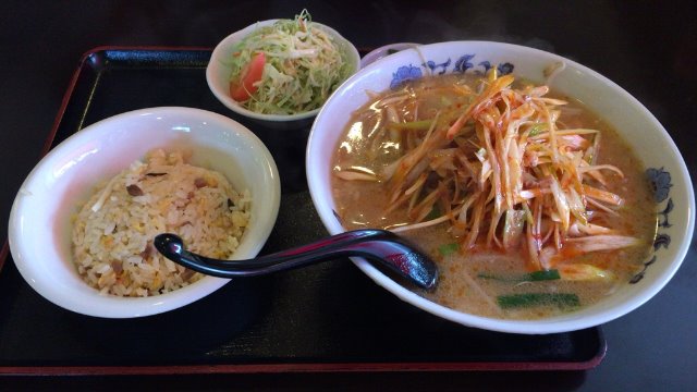 「桂林」さんという所で「ねぎ味噌ラーメン・チャーハンセット」を注文!!