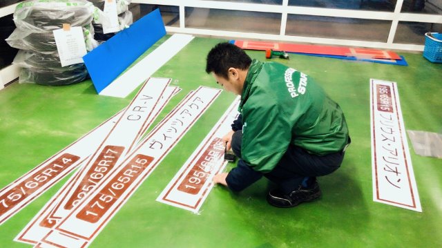 今日は夏タイヤの展示にむけて下準備中です!!