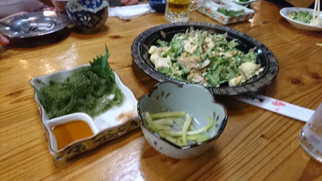 夜は居酒屋さんで 島らっきょう、海ぶどう、ゴーヤチャンプルー