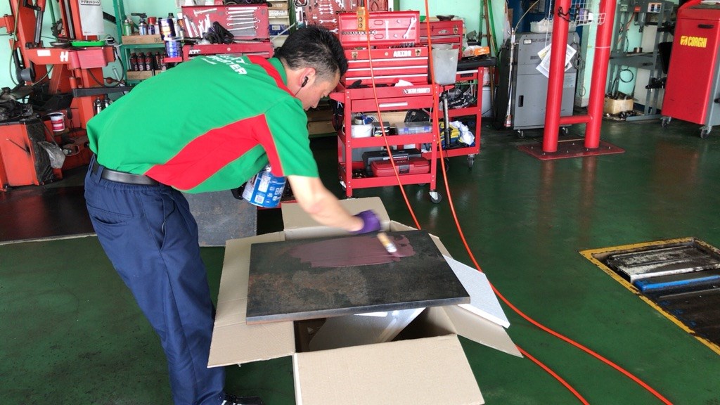 ガレージもタイヤを並べたり…。