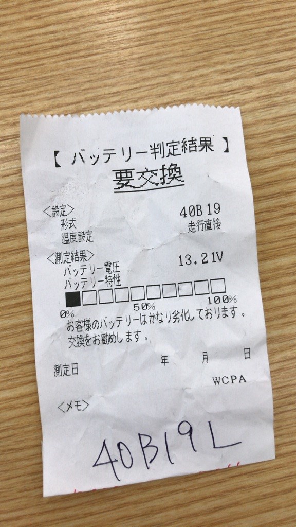 来週には車検に出すみたいでしたが、レディースデーの今日はオイルだけじゃなく、バッテリーなどのメンテナンス商品も20%OFFになるので一緒に交換させていただきました(*^_^*)
