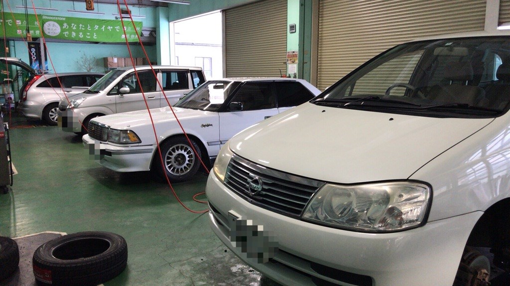 クラウン車検整備、タント車検整備、モコマフラー交換、XVタイヤ交換&アライメントなどなど…。