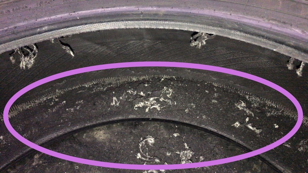 タイヤの内部がダメになっていて大量の粉が出ていました。