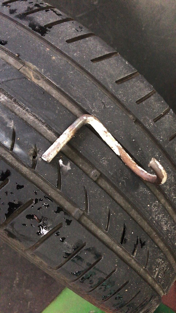 かなり大きいものが刺さっていて、穴も修理できるギリギリの大きさでした(>_<)