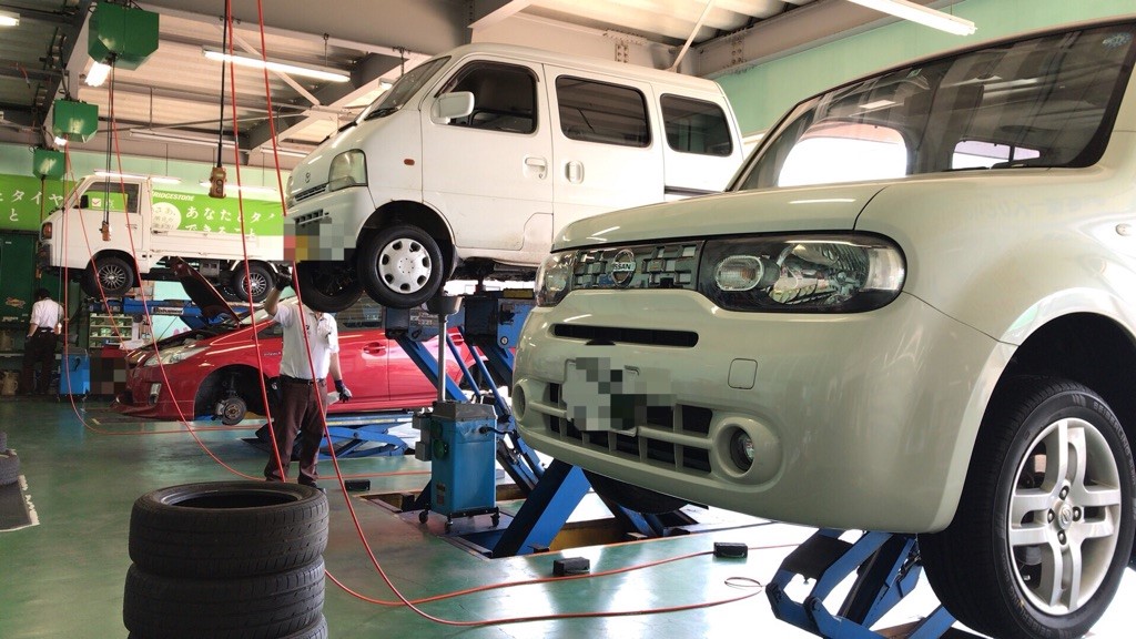 他にもキューブのタイヤ交換、キャリーのアライメント調整、プリウスの車検も入庫しています!!
