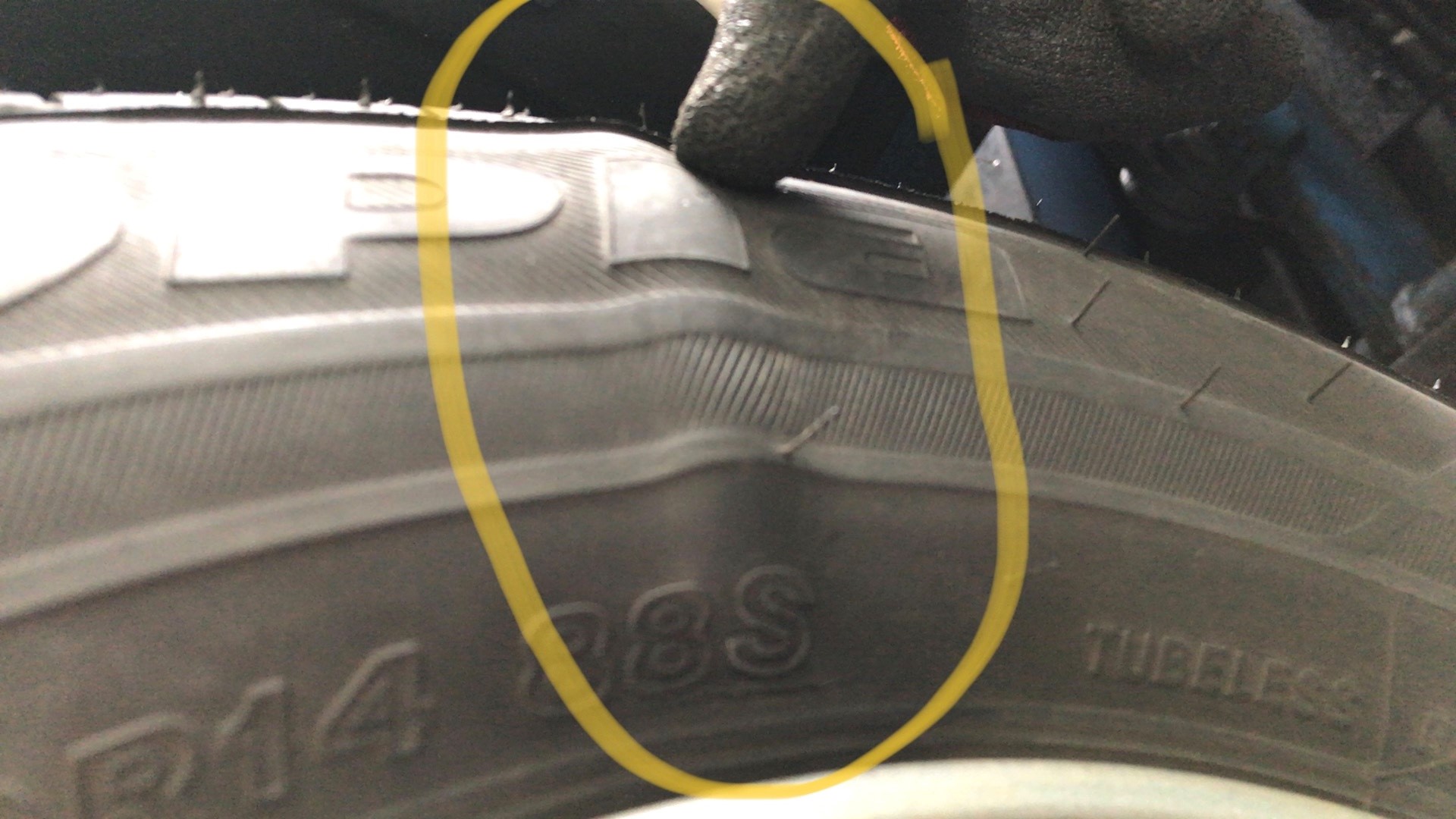 タイヤサイドの一部分だけ膨らんでいる場合、タイヤ内聞コードが切れている可能性があり危険なんです(/ω\)